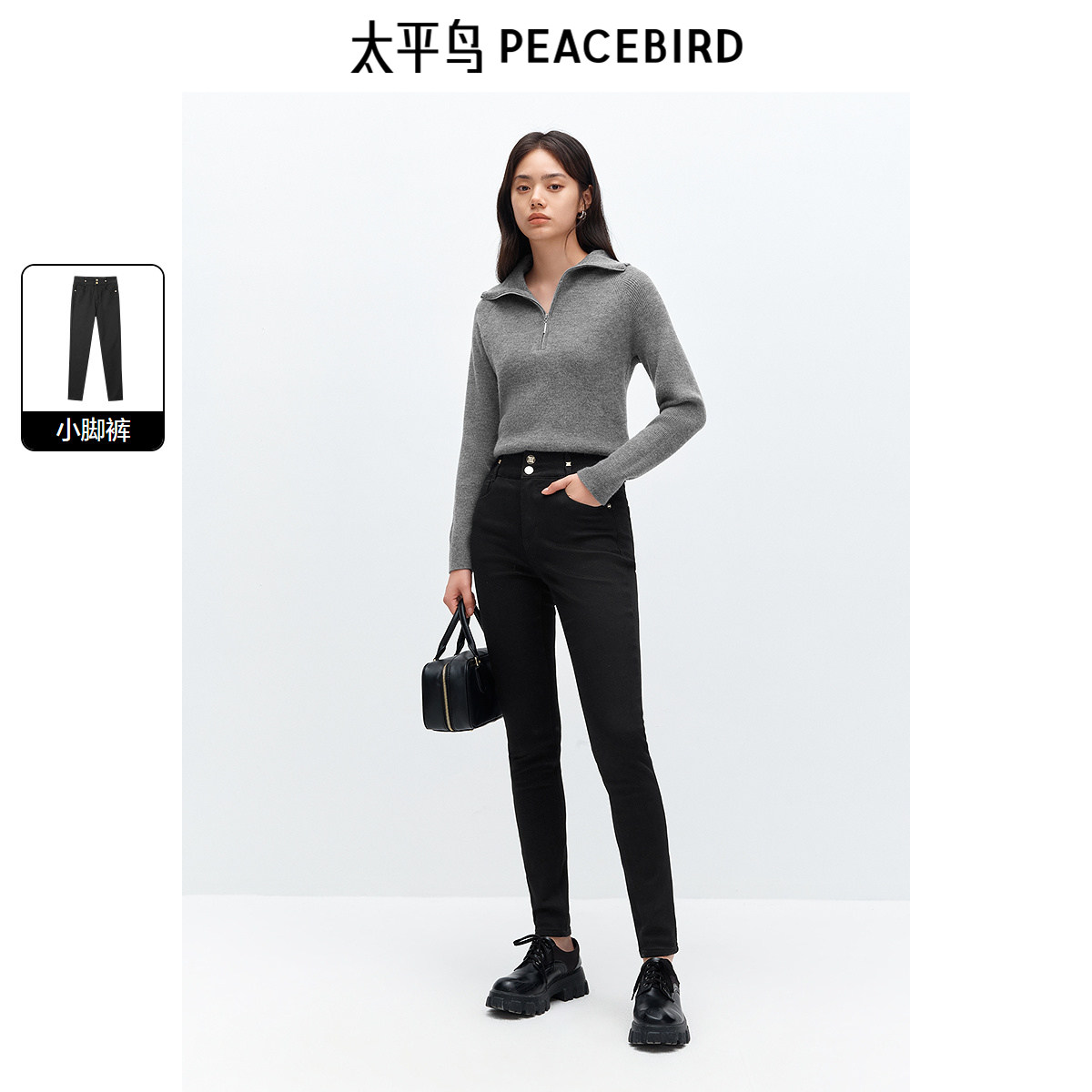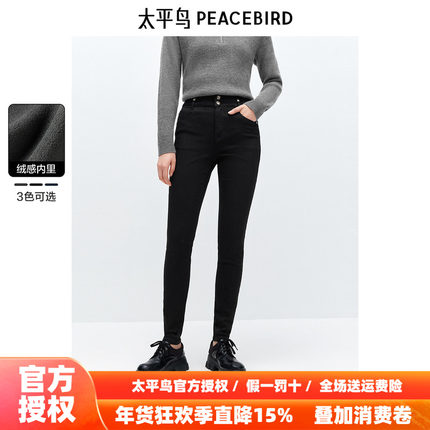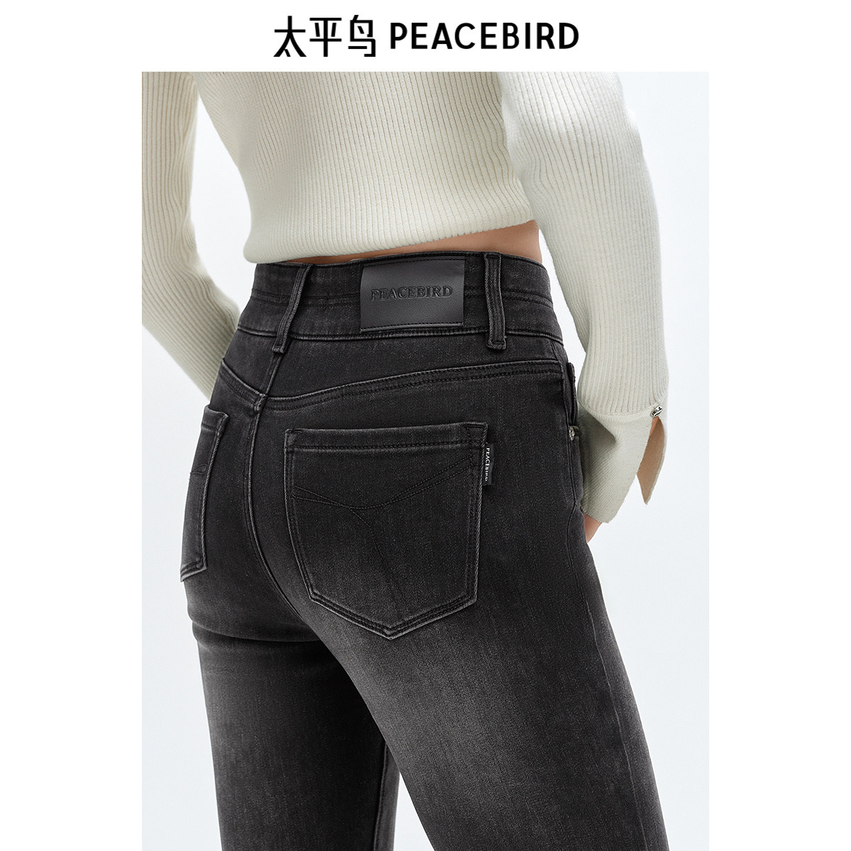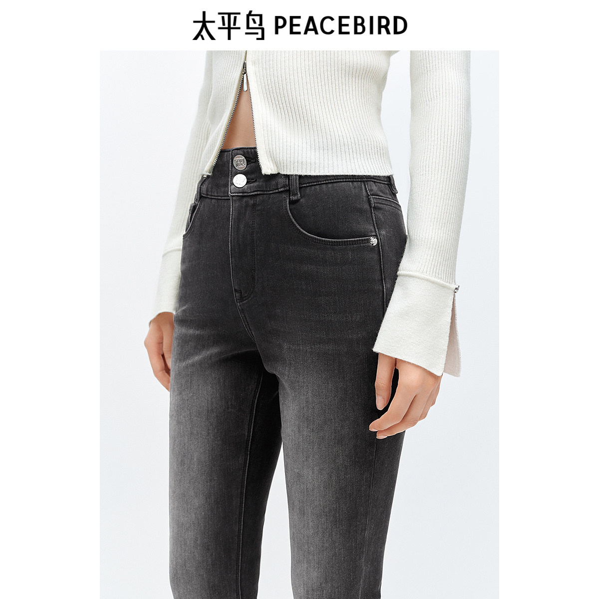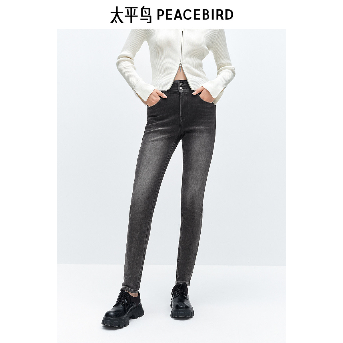 太平鸟高腰紧身小脚牛仔裤2025年秋季新款温暖丹宁修身加绒牛仔裤