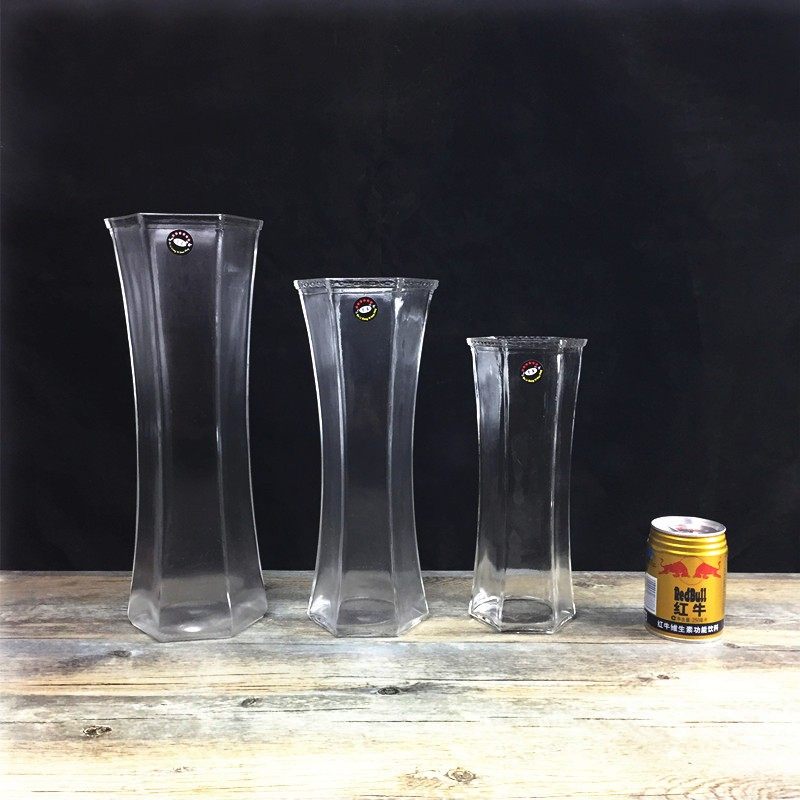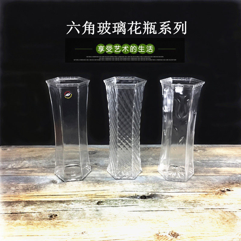 六角玻璃花瓶富贵竹透明插花瓶中大号百合水生培简约客厅桌面瓶子