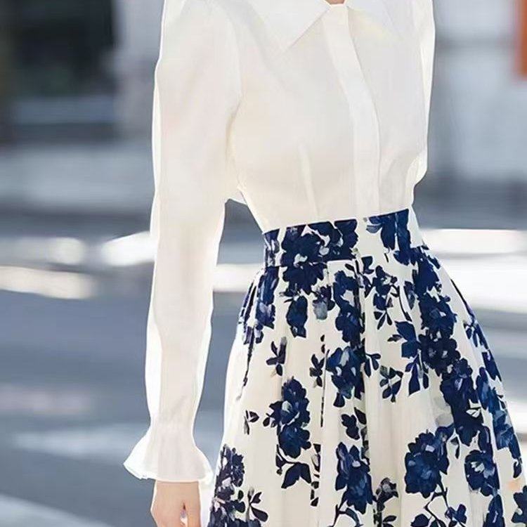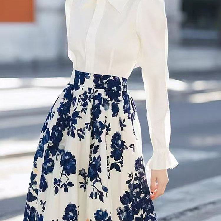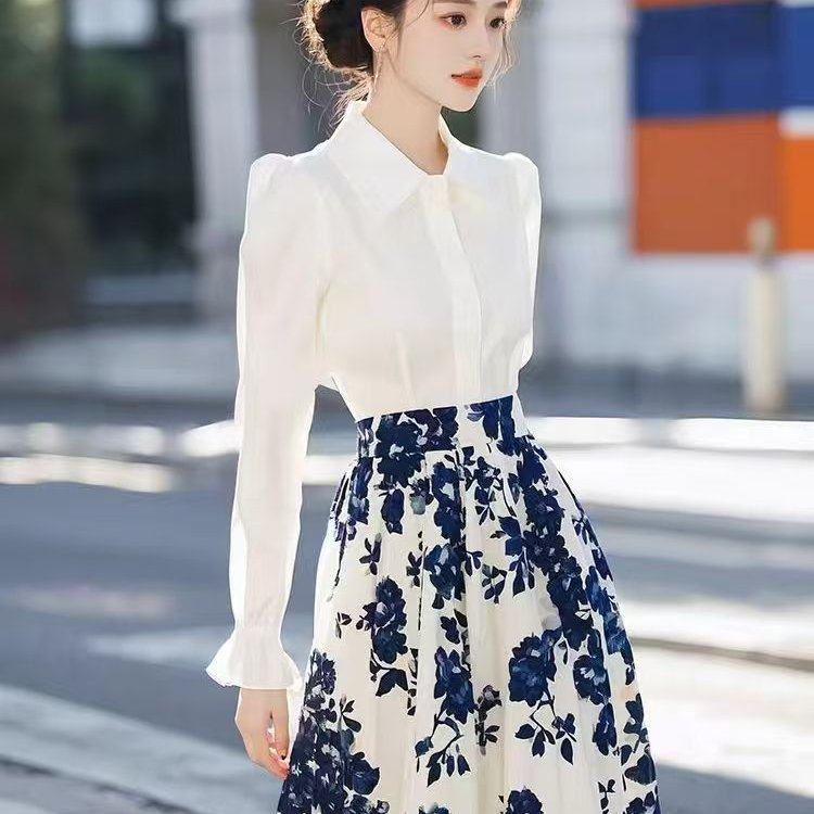 春秋季穿搭整套名媛气质炸街时尚洋气高级感小香风白色碎花套装裙
