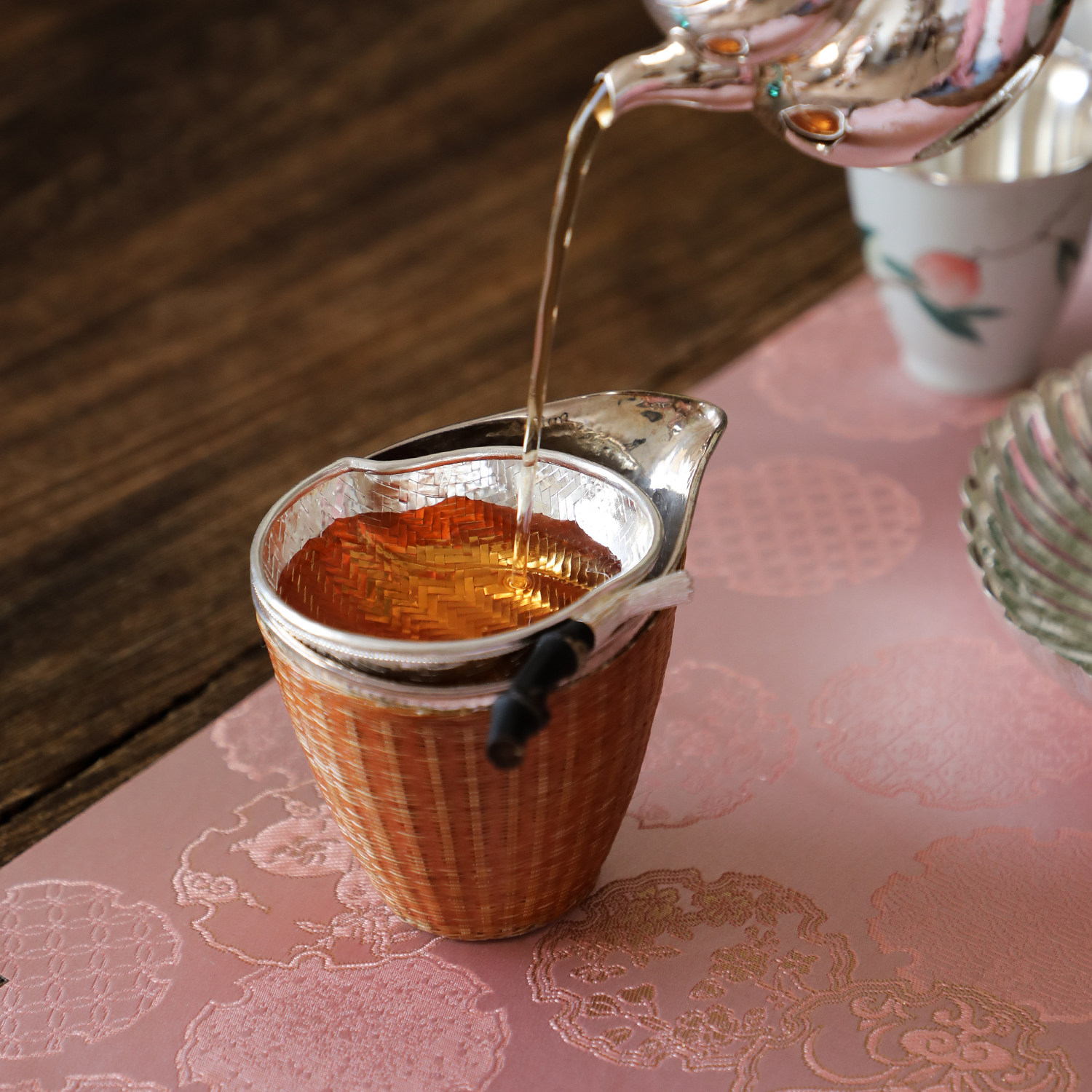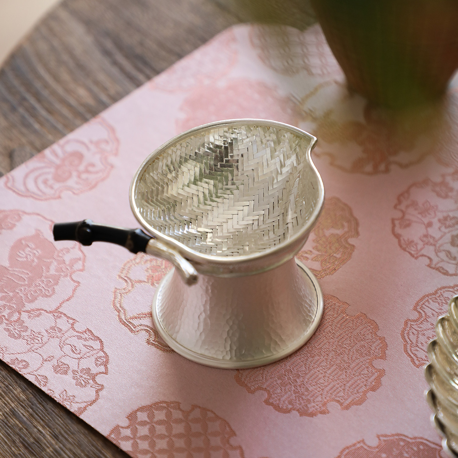 纯银时代 春桃银编茶滤茶漏纯手工足银999过滤精致仿生纯银滤茶器