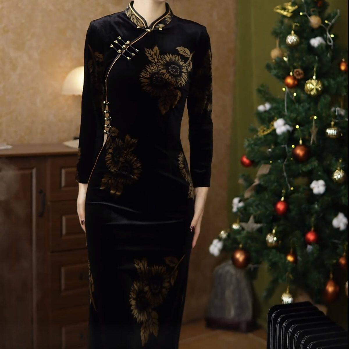 【向阳花】新中式国风改良旗袍高端精致轻奢高级感御修身印花长裙