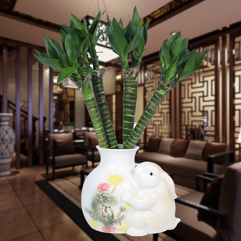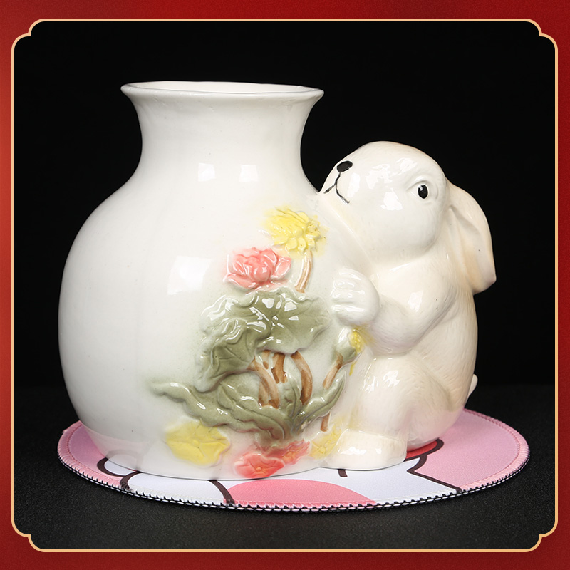 吉祥居李居明陶瓷兔子花瓶摆件客厅卧室富贵竹兔子抱花瓶装饰