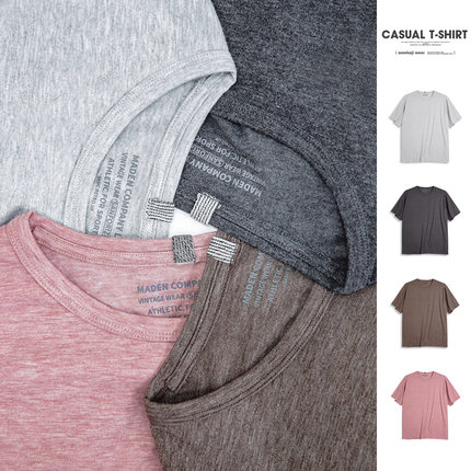 马登工装 美式休闲混纺无痕短袖T恤薄款透气纯色圆领打底汗衫男夏
