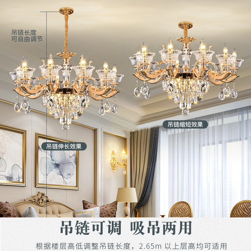 欧式客厅吊灯感轻奢水晶大吊灯自建房别墅大厅主灯古镇灯具城