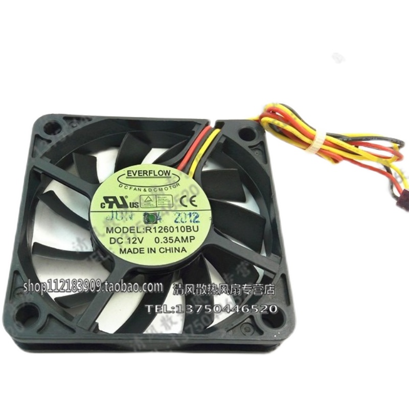 台湾 EVERFLOW R126010BU 6010 6CM 12V 0.35A双滚珠 大风量 风扇