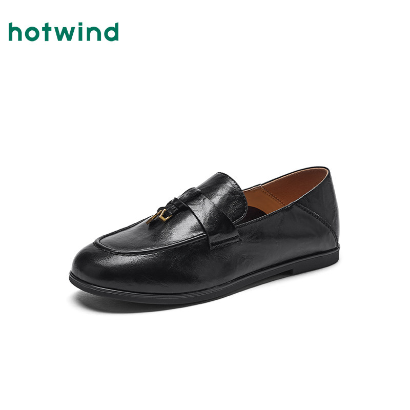 热风平底乐福鞋女款2026年秋季新款英伦复古女鞋百搭黑色小皮鞋