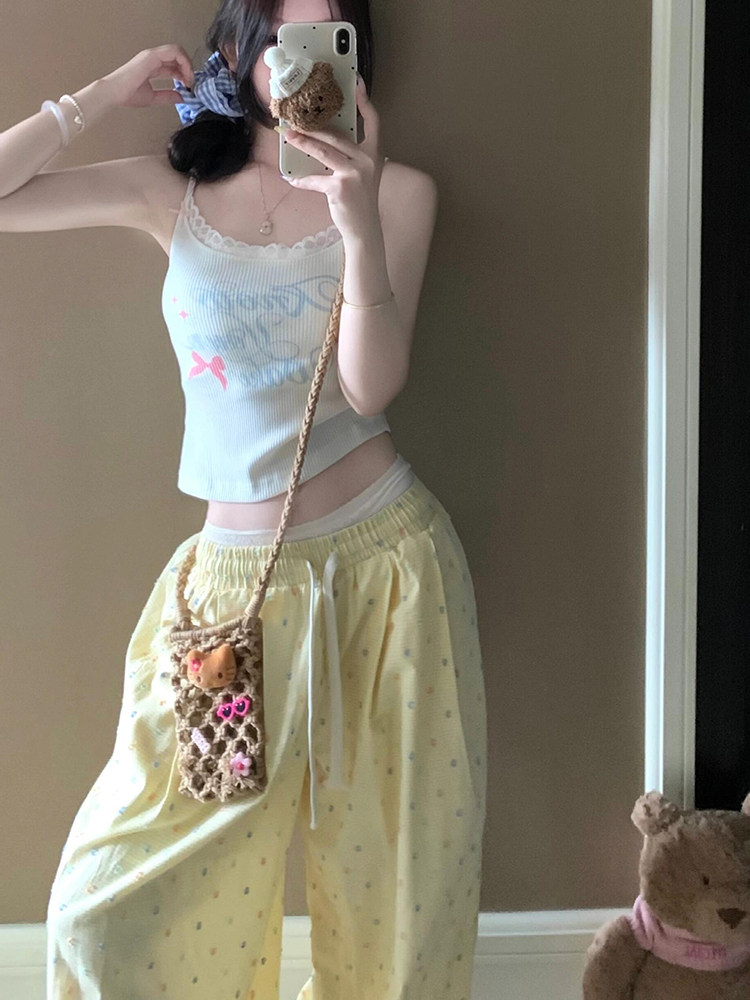 甜辣妹蕾丝边吊带小背心女夏季2024新款美式内搭外穿纯欲无袖上衣