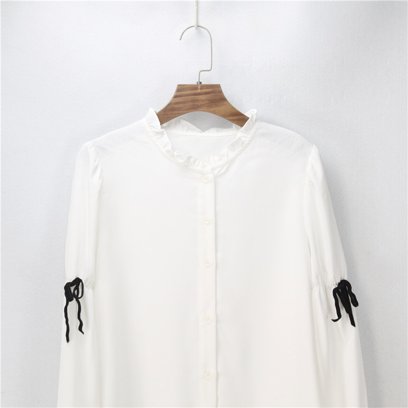 町家蝴蝶结雪纺衬衫秋季新款复古优雅法式白色上衣顺滑C2CAC4104