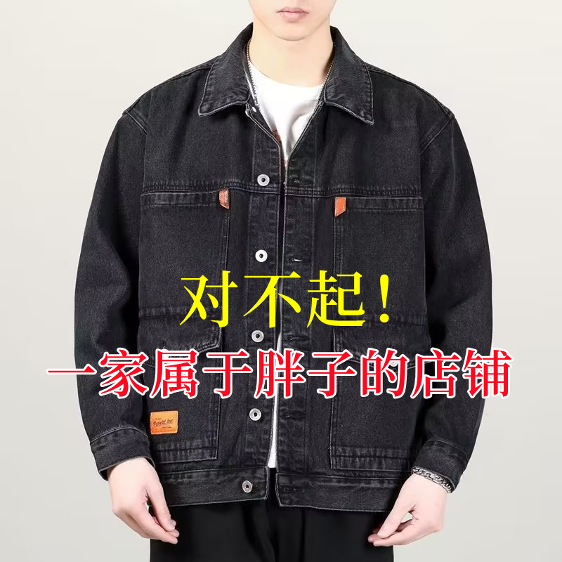 2025牛仔外套男士宽松翻领上衣秋冬季潮牌加肥加大工装夹克牛仔衣