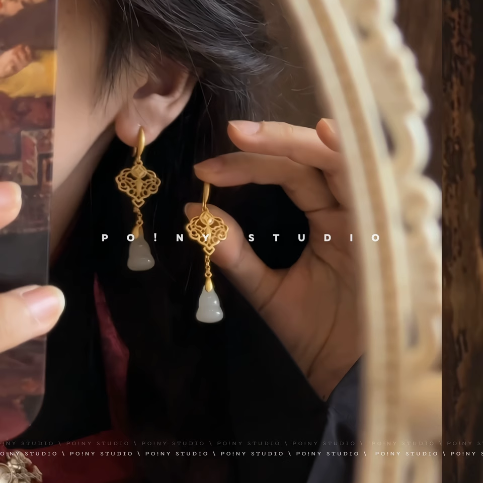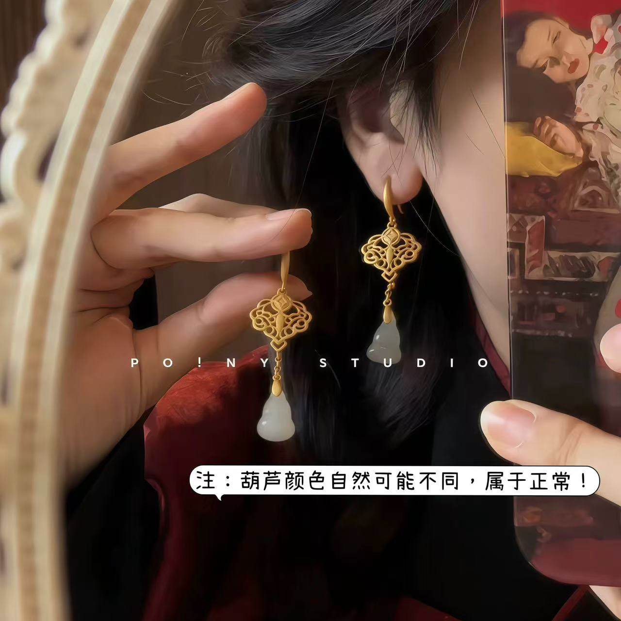 如意吉祥葫芦耳环女玉兰花中国风古法金色长款耳坠古典复古耳饰