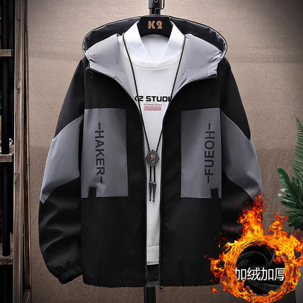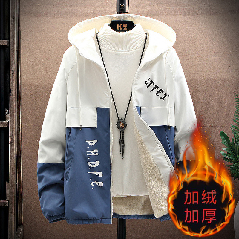 加绒加厚外套男潮流冬季青少年学生男士夹克休闲连帽男装上衣褂子
