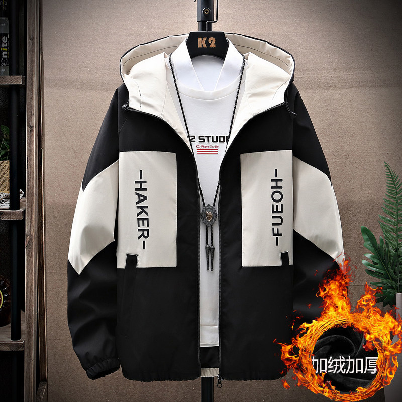 连帽秋冬季宽松加绒加厚外套男潮