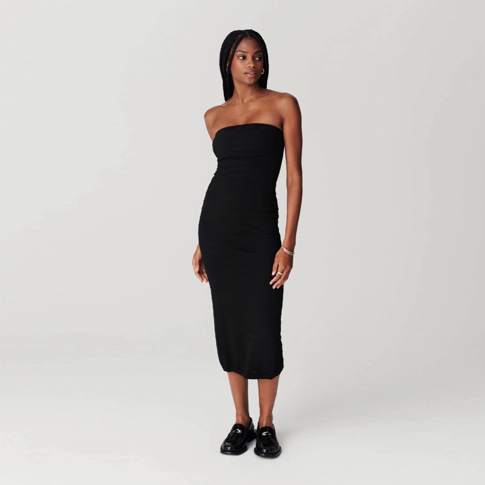 瑞典设计师AD00RE 女款 纹理条纹弹力修身针织抹胸连衣裙