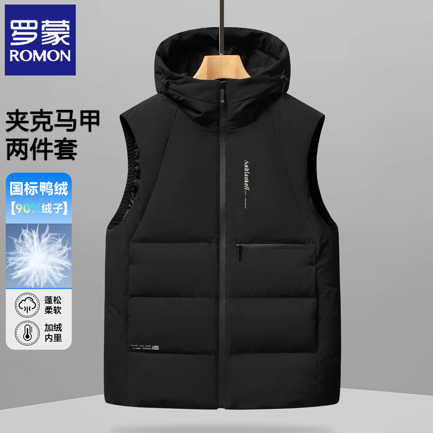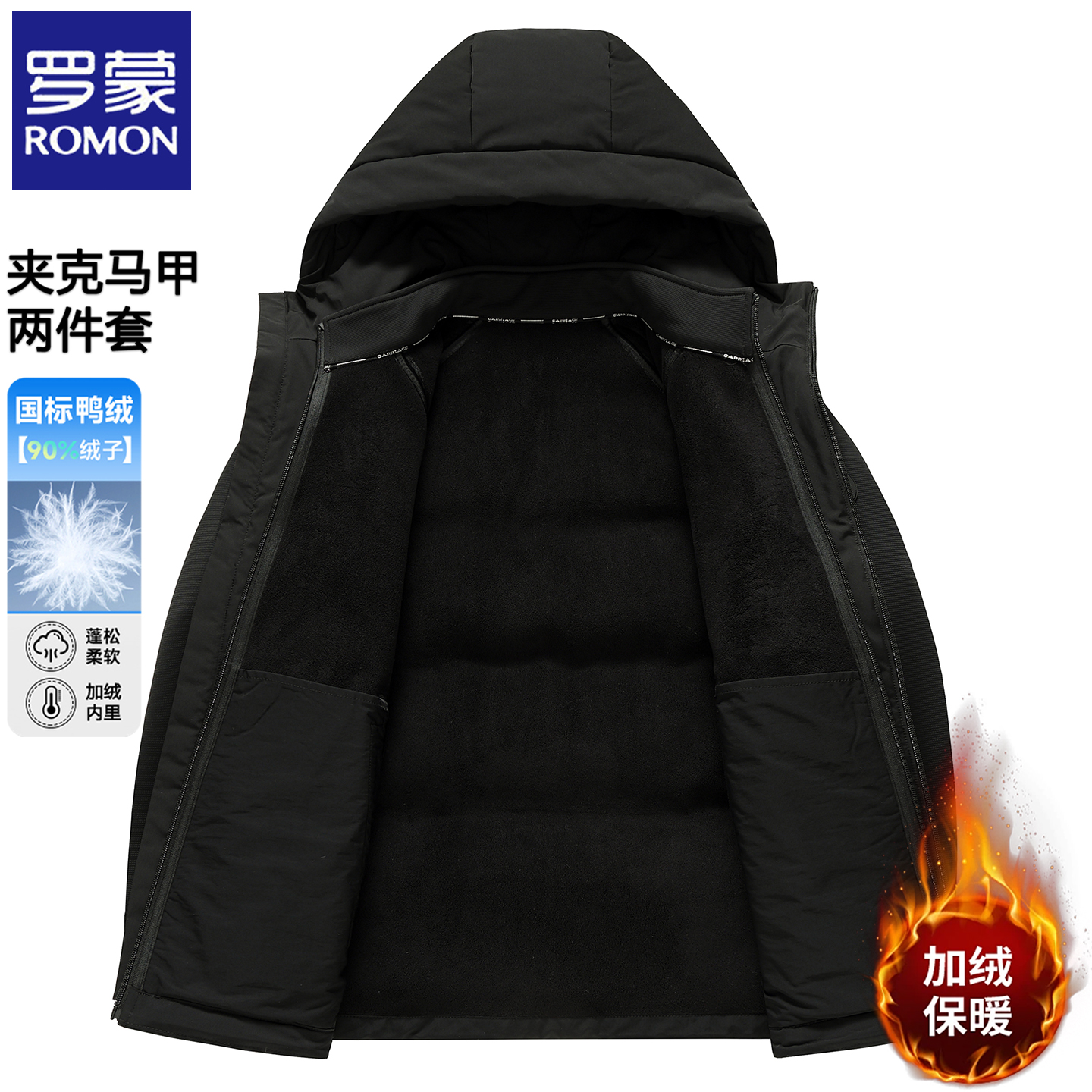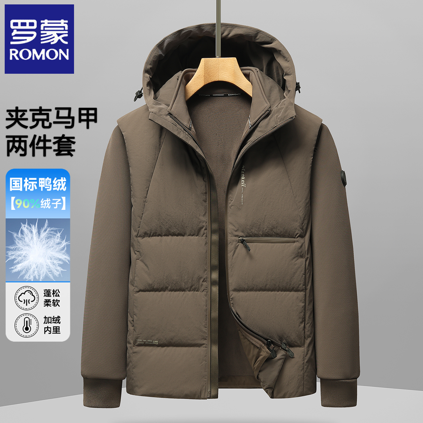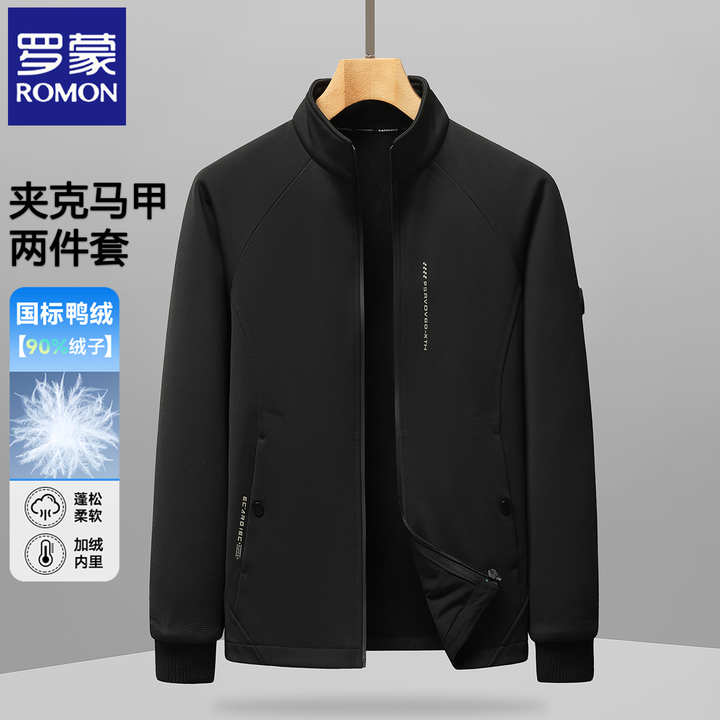 罗蒙2025冬季加厚羽绒服两件套男