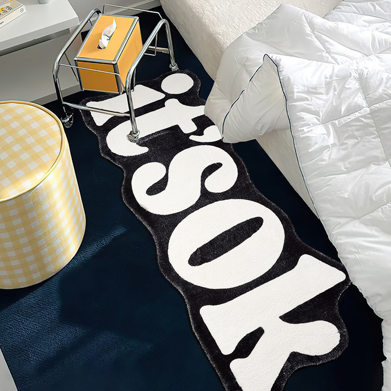 摊牌 地毯卧室客厅2023新款床边毯个性长条入户T地毯家用加厚简约