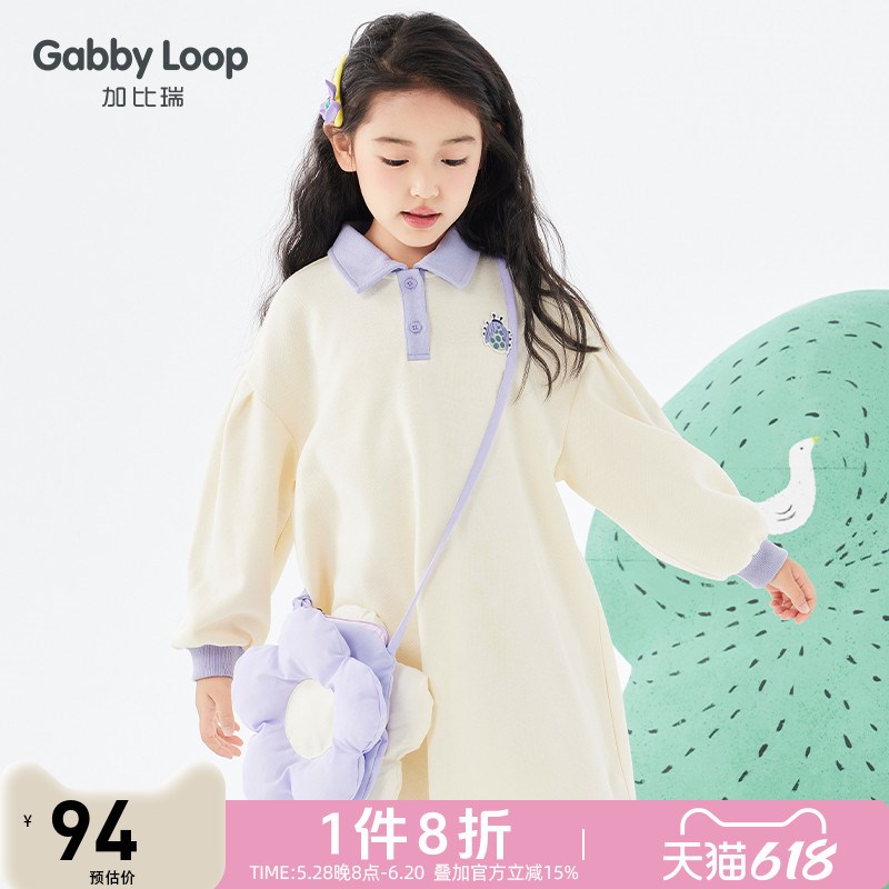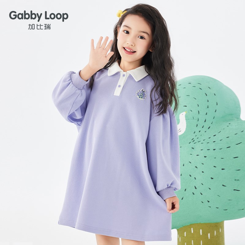 加比瑞童装 春秋季新品 女童简约休闲翻领长袖连衣裙中大童裙子