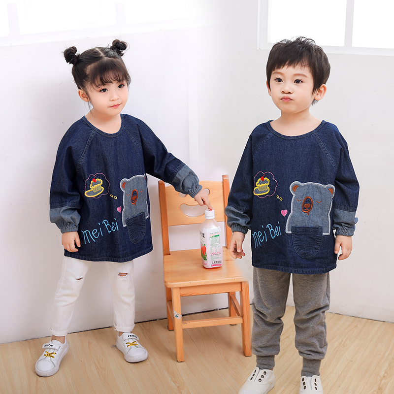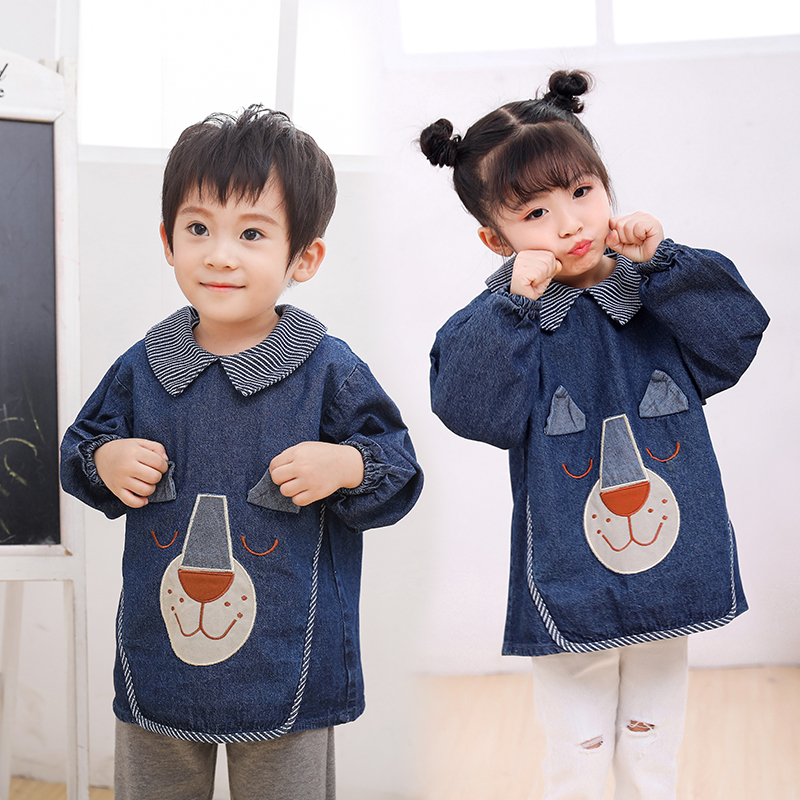 宝宝牛仔棉罩衣儿童反穿衣男女童秋冬加厚围裙兜兜褂婴儿吃饭衣