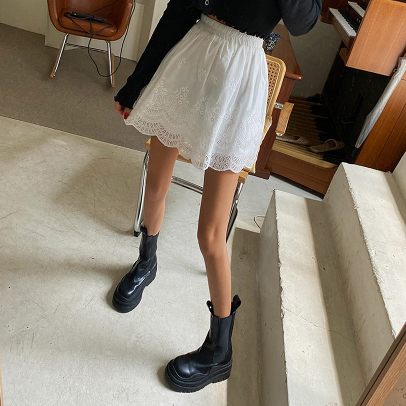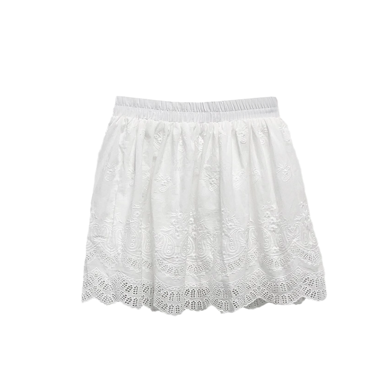 2025春夏新款纯色棉布刺绣半身裙叠穿假下摆百搭蕾丝花边高腰短裙