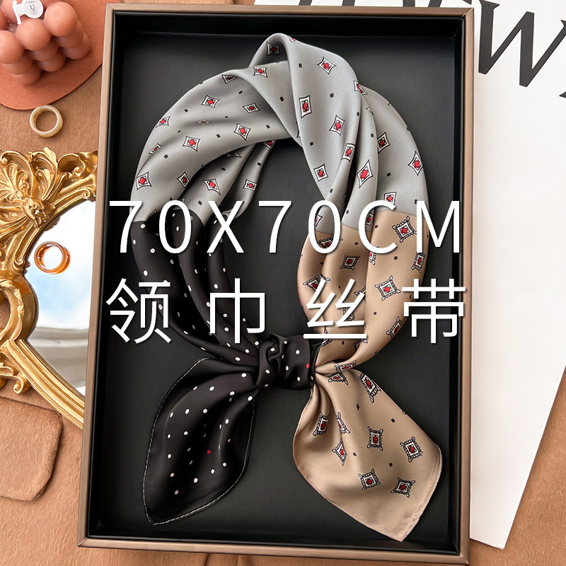 咖色小方巾丝巾女春秋冬季搭配衬衫职业装饰脖子纱巾薄围巾70x70