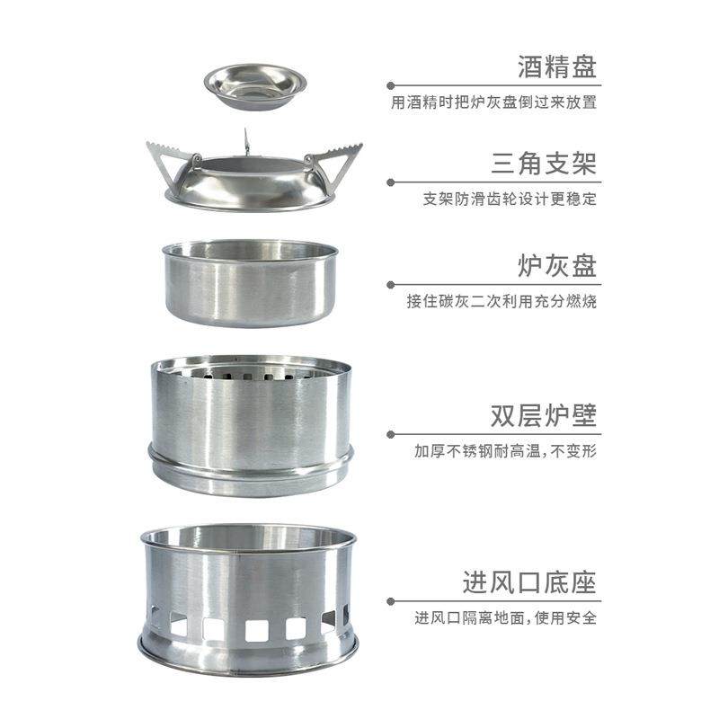现货户外折叠柴火炉不锈钢便携式野营炉具炉头野餐烧碳烤炉