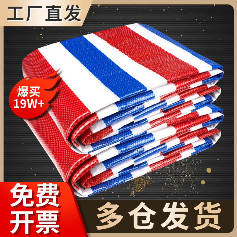 三色彩条布防水防晒加厚防雨布防水塑料篷布帆布遮阳装修油布批发