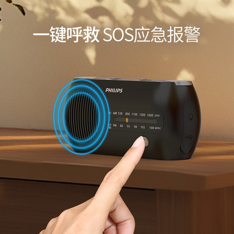 飞利浦多功能应急收音机老人专用充电款手摇发电战备手电筒2100