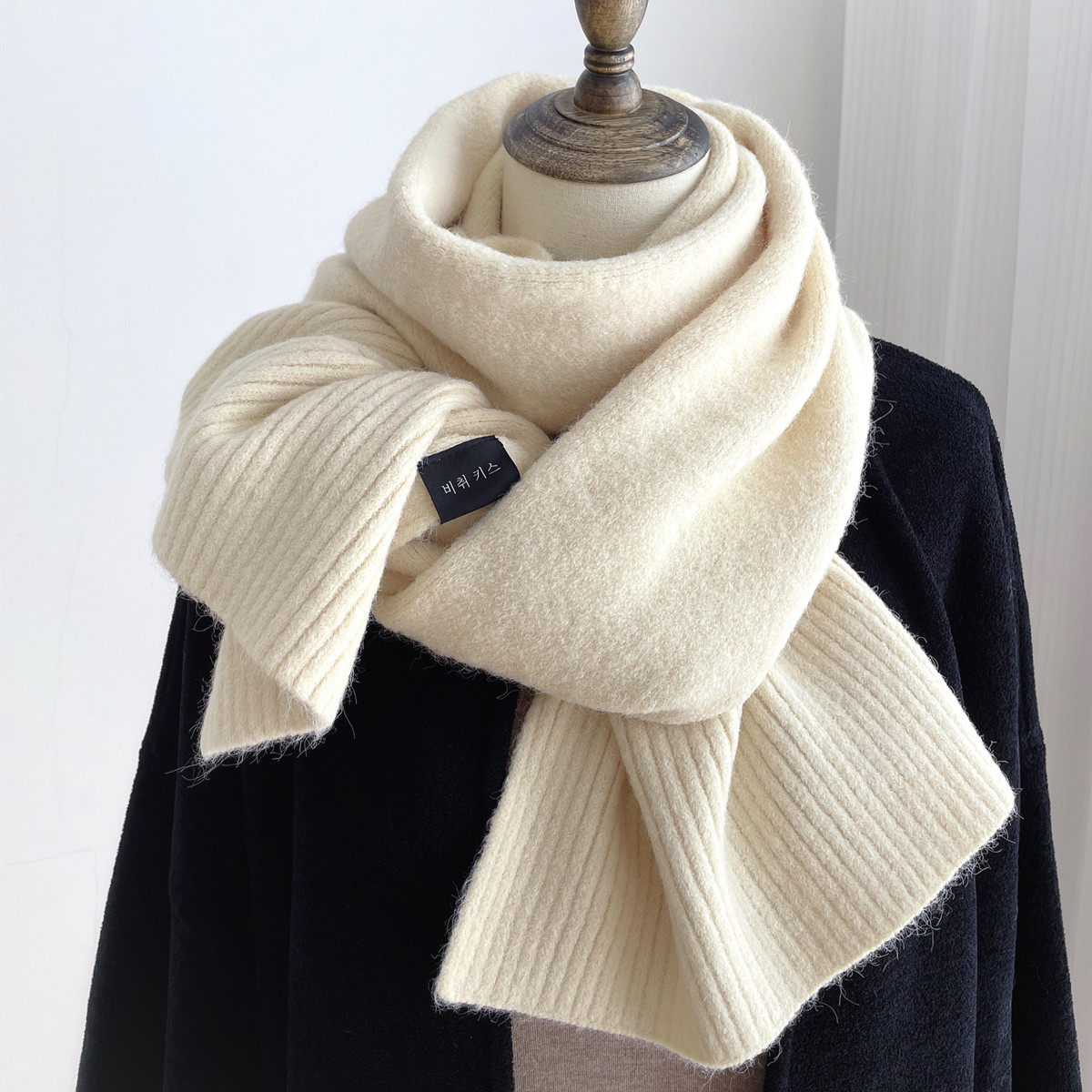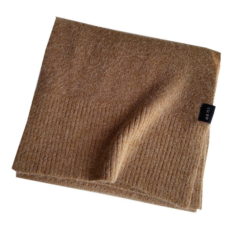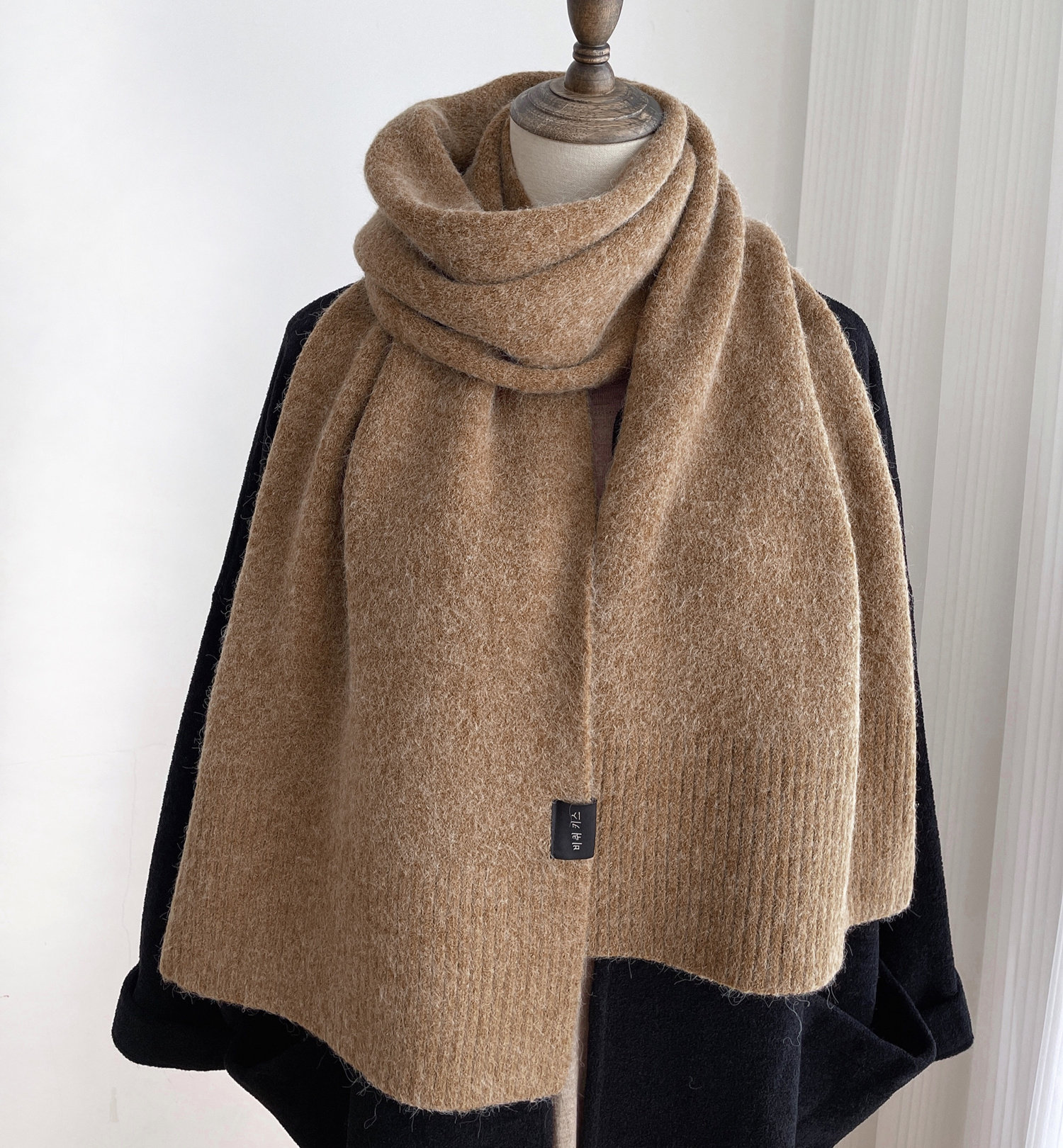 韩系纯色毛线针织卡其色围巾女冬季情侣款加厚保暖围脖送男友礼物