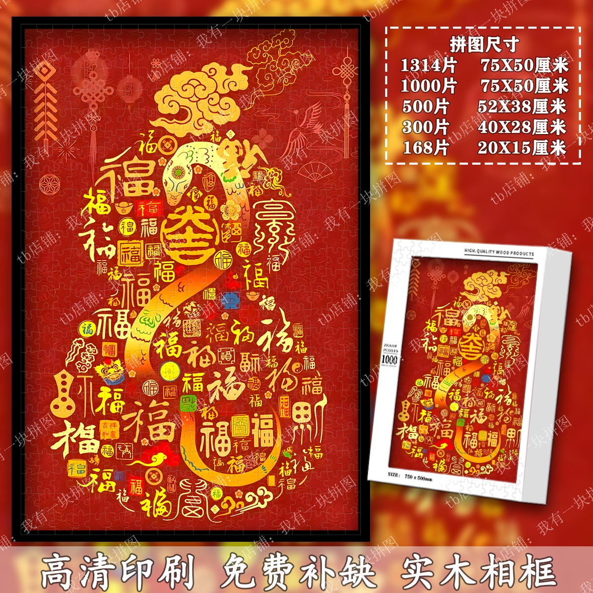 五路财神拼图1000片新年装饰画diy减压手工益智玩具原创新年礼物