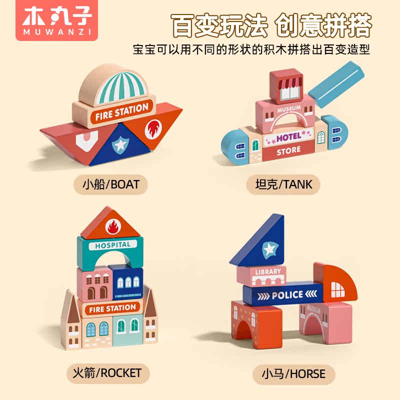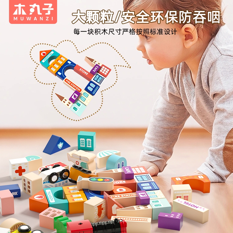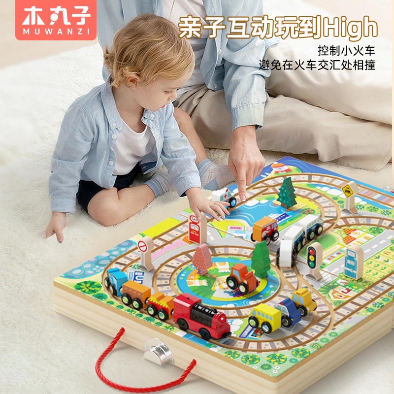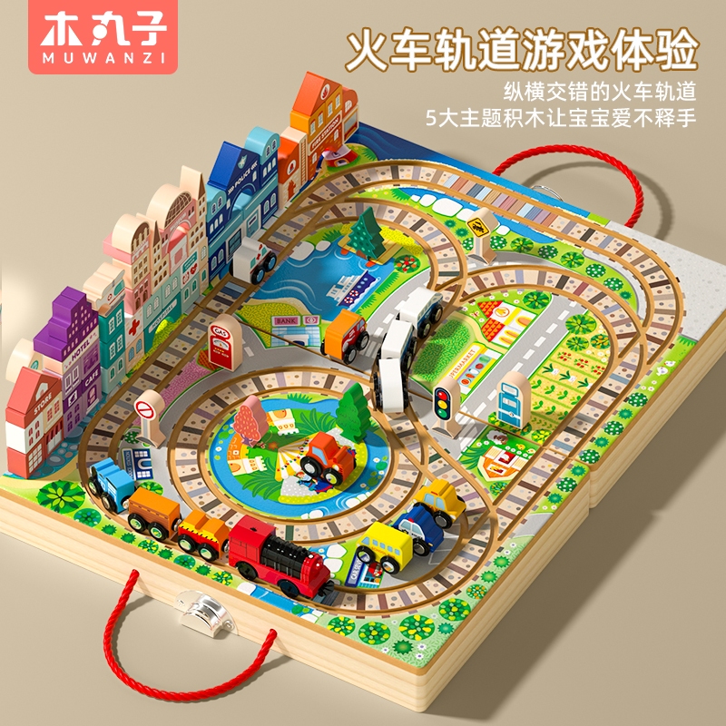 木质幼儿童火车轨道拼装积木宝宝早教益智木制玩具过生日节日礼物