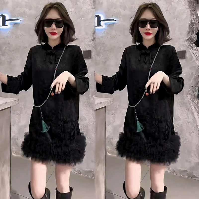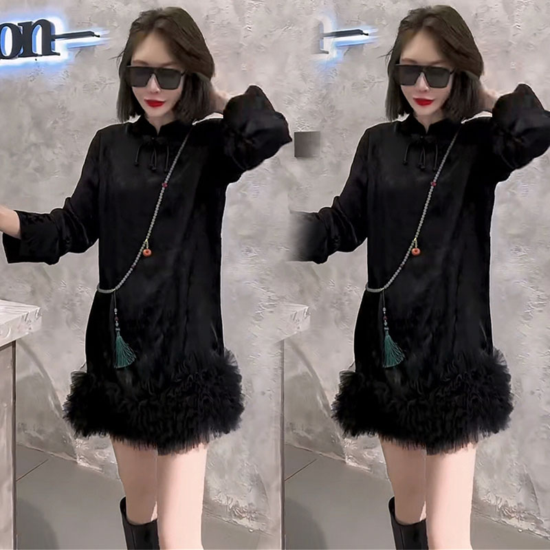 新中式连衣裙女24秋冬复古立领流苏设计感荷叶边减龄显瘦改良旗袍