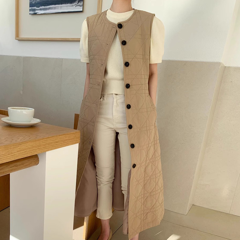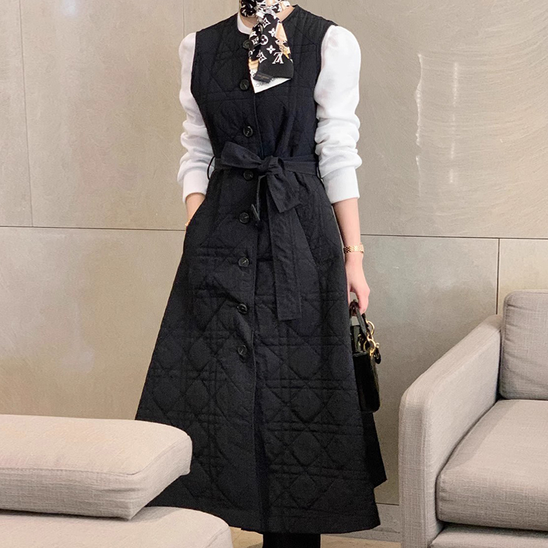 韩国chic秋冬复古气质百搭长袖棉服外套+系扣马甲背心连衣裙套装