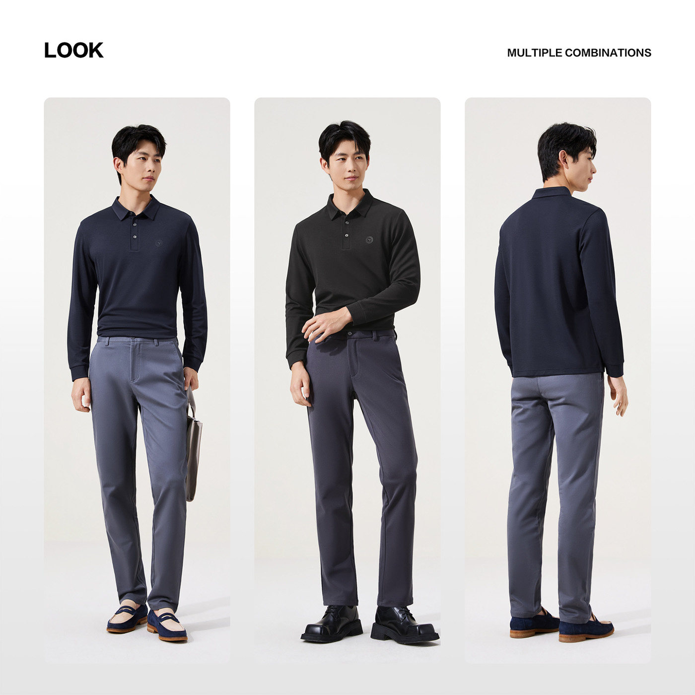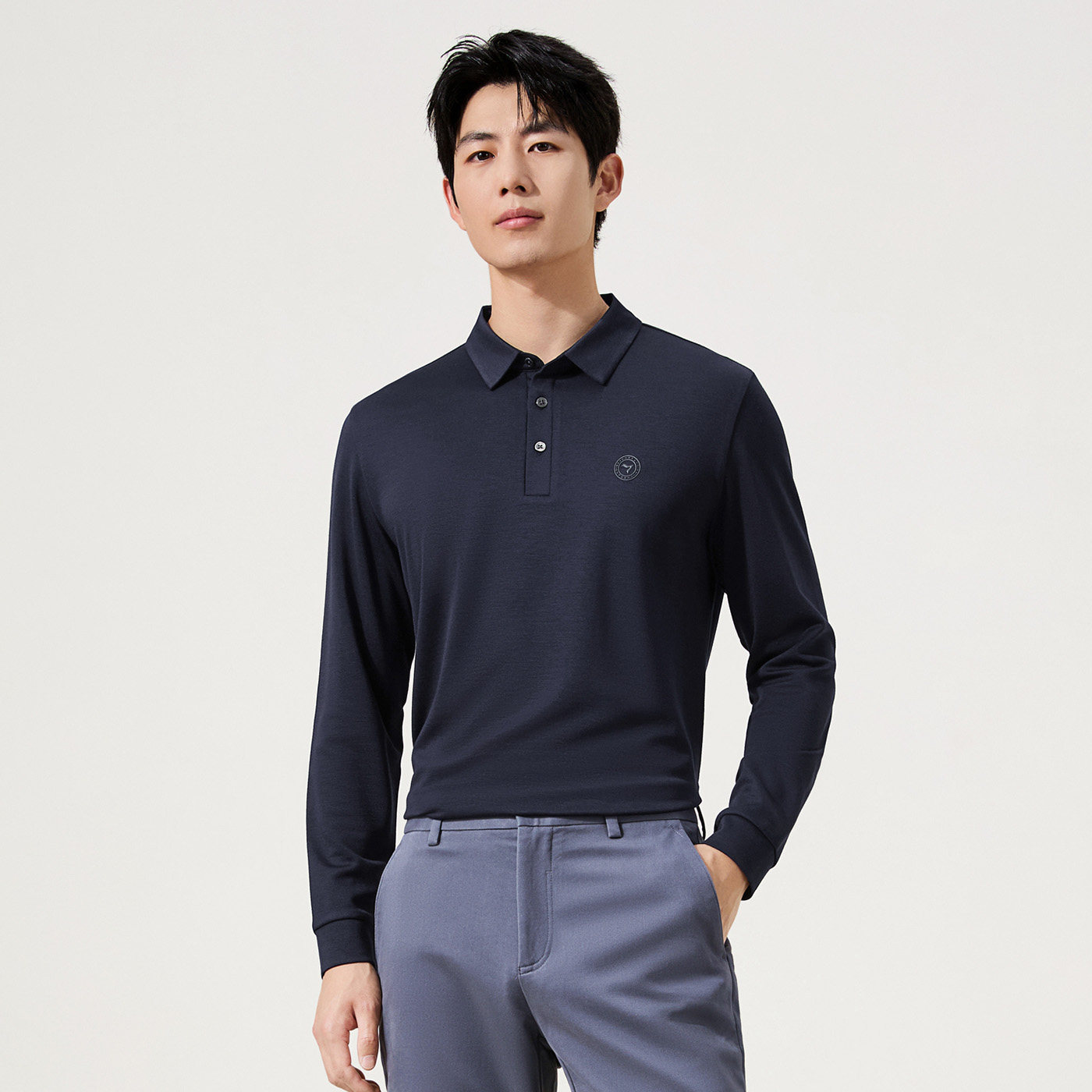 含羊毛男士长袖翻领Polo衫