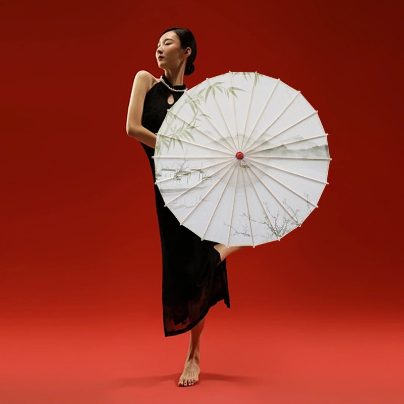 古风油纸伞舞蹈演出伞古典旗袍伞淡雅水墨中国风装饰伞绿竹梅花