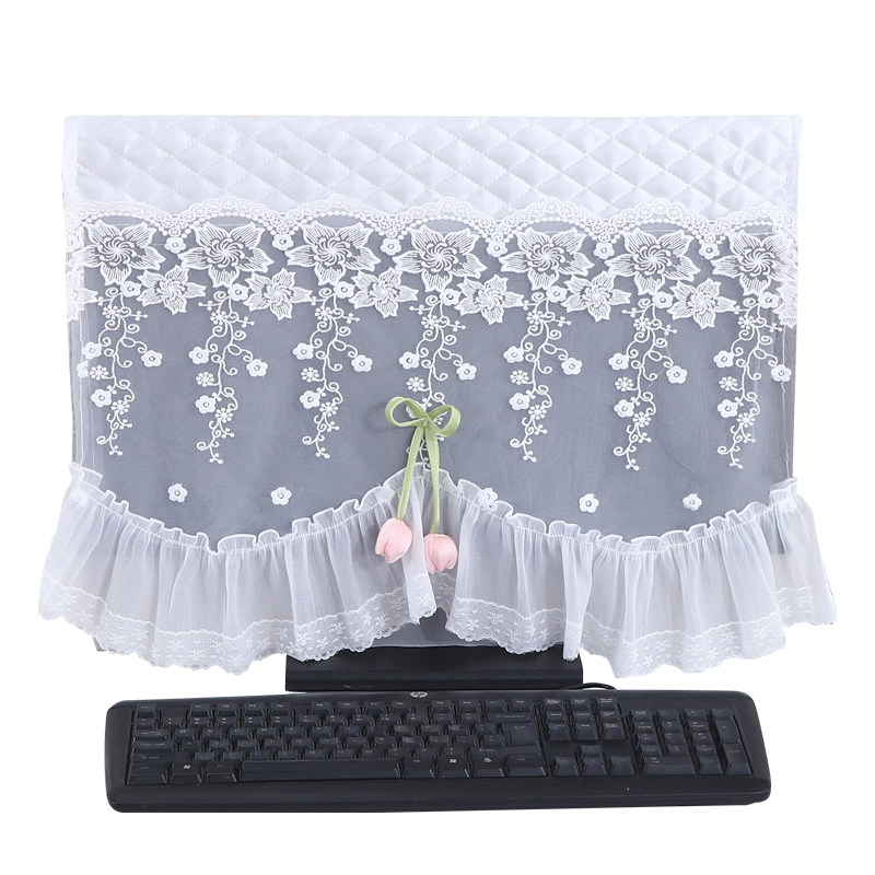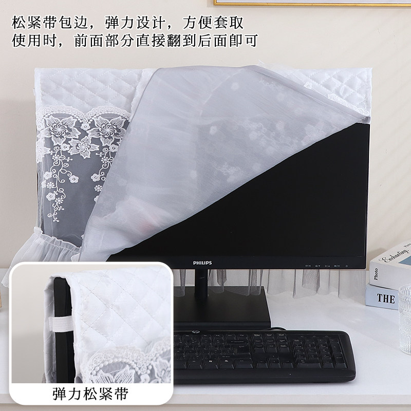 电脑防尘罩开机不取新款蕾丝台式机电脑罩电脑套子盖布电脑桌布罩