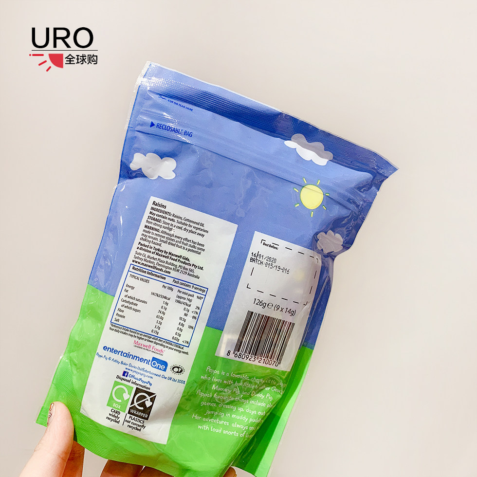 英国佩佩猪Peppa Pig小妹小猪葡萄干无糖提子干宝宝儿童零食 1+