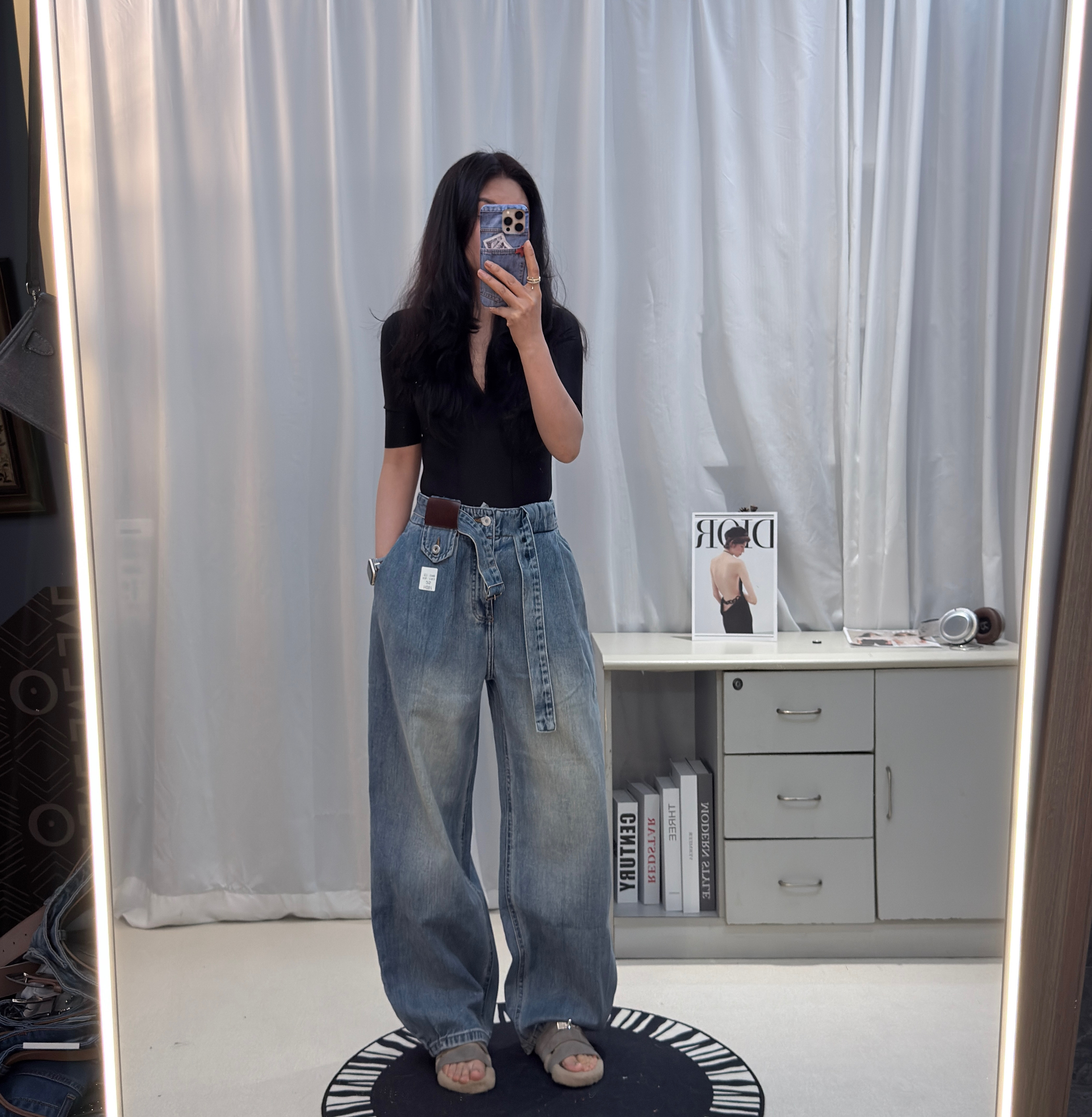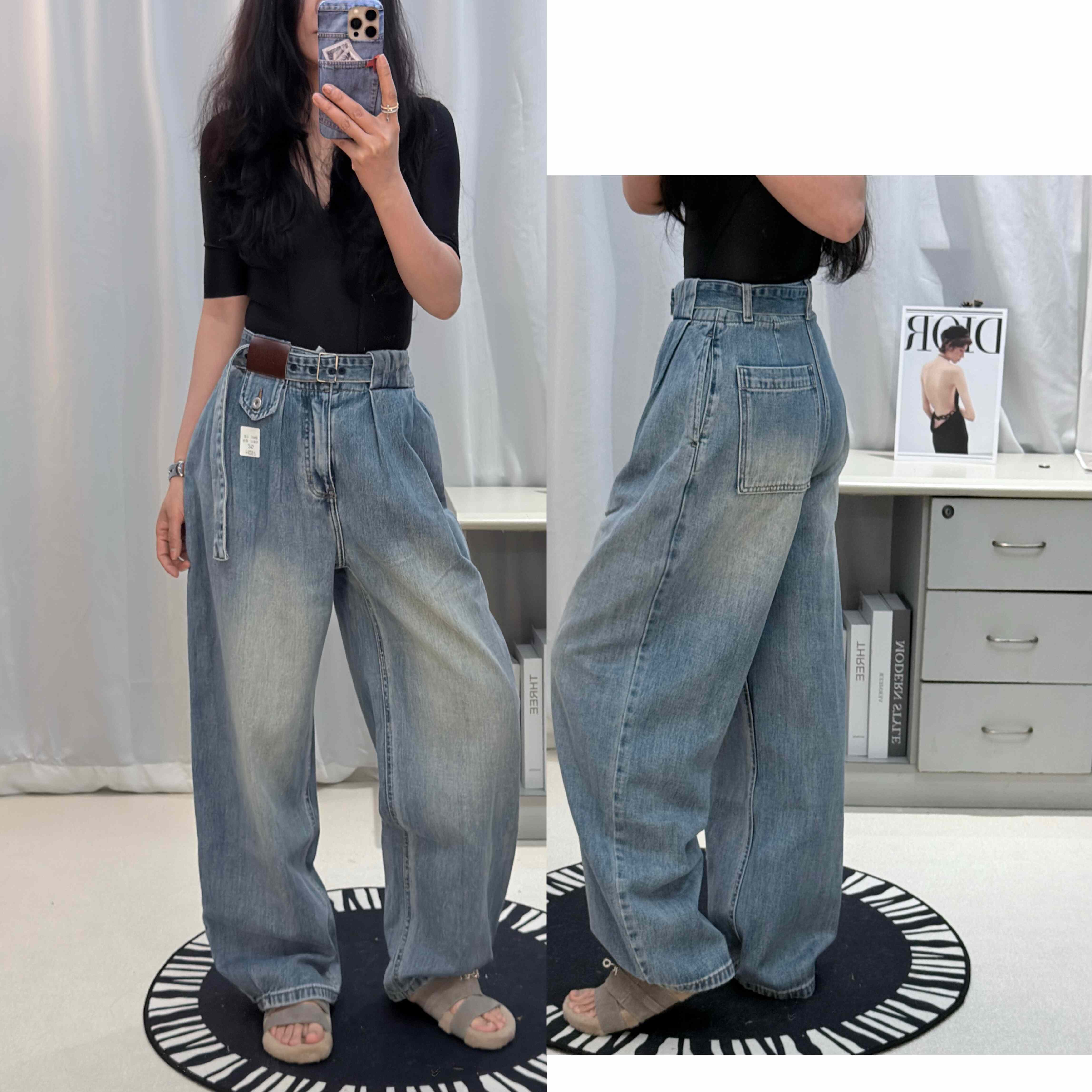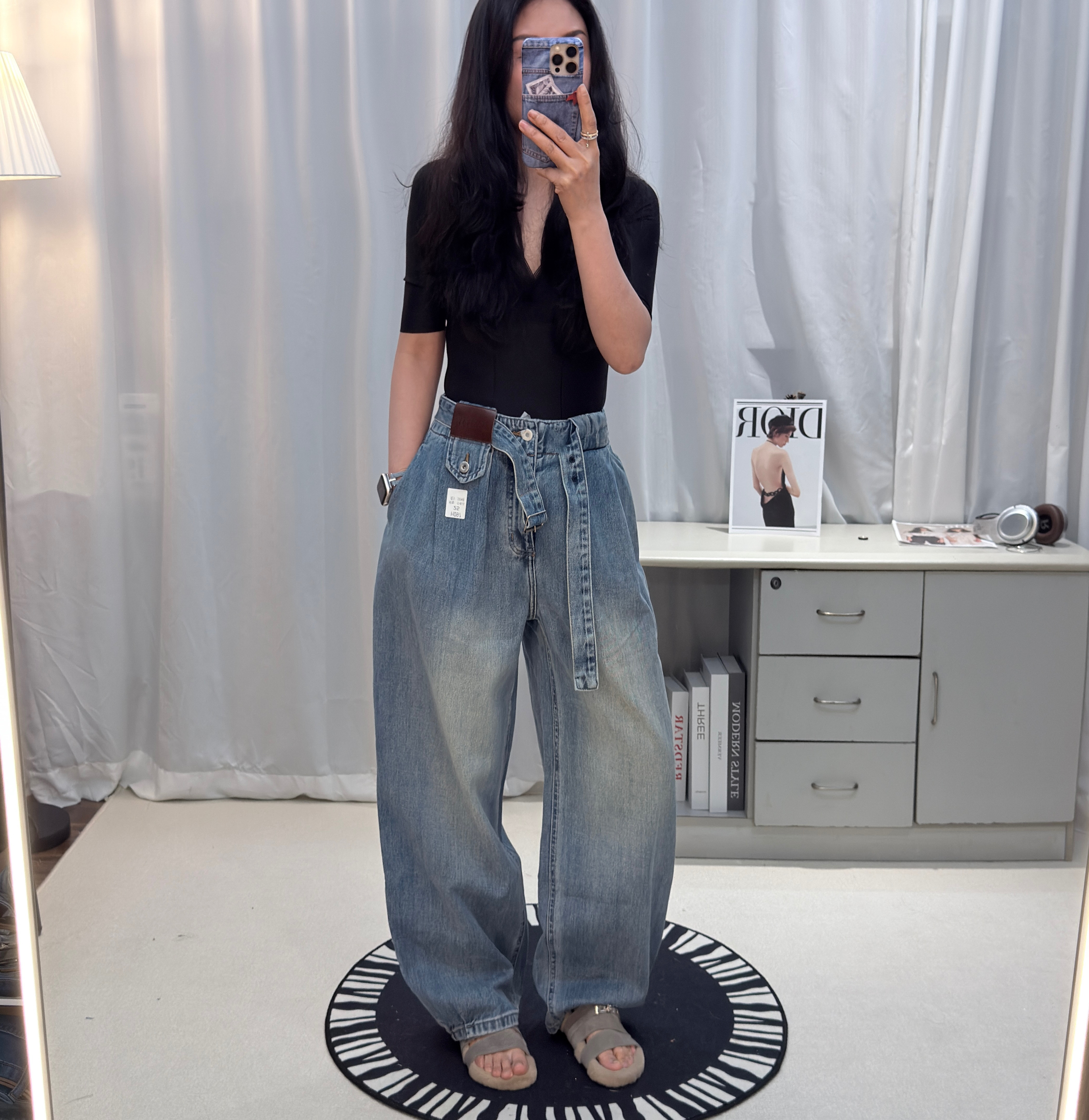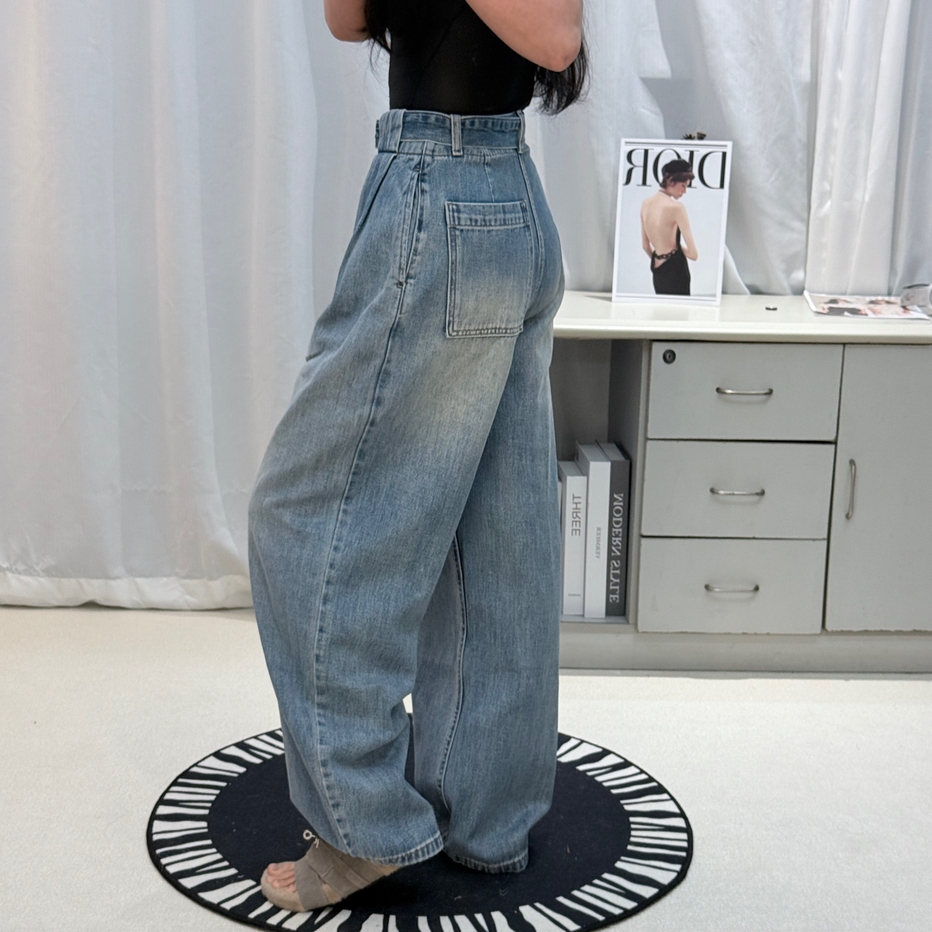 JEANS H097 春季2026新款高腰无弹个性宽松阔腿弯刀蓝牛仔裤女B