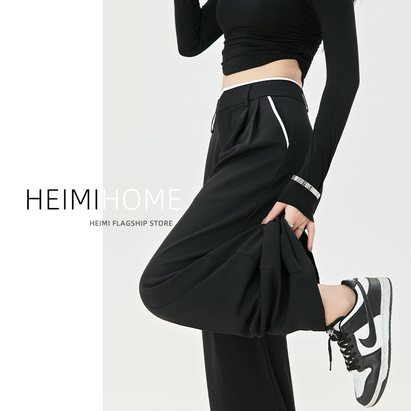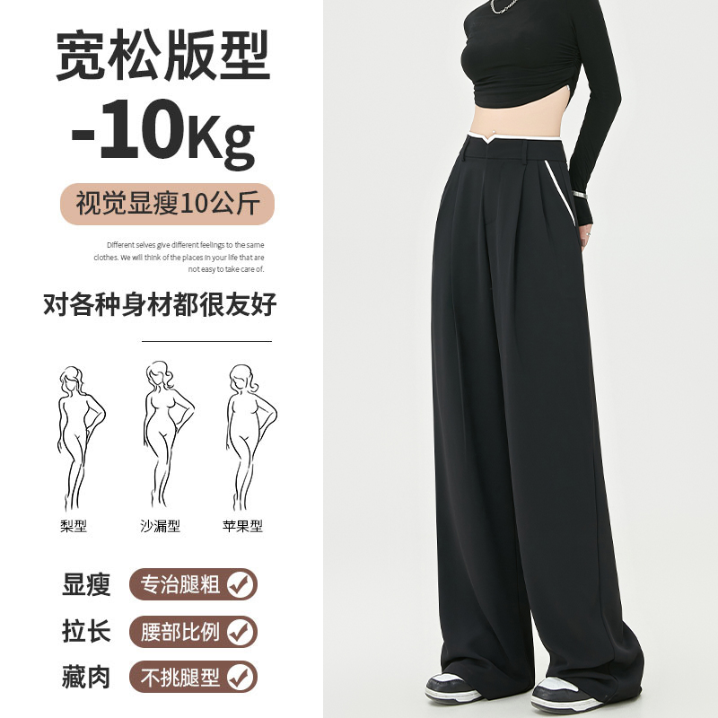 撞色西装裤子女春夏秋高级垂感休闲拖地裤小个子黑色设计感阔腿裤