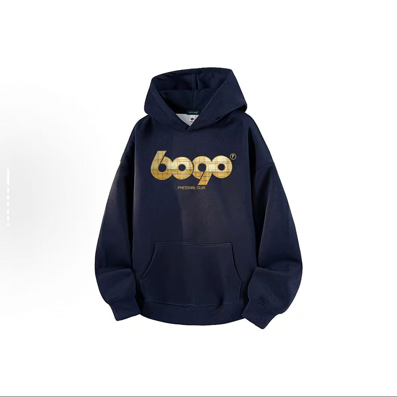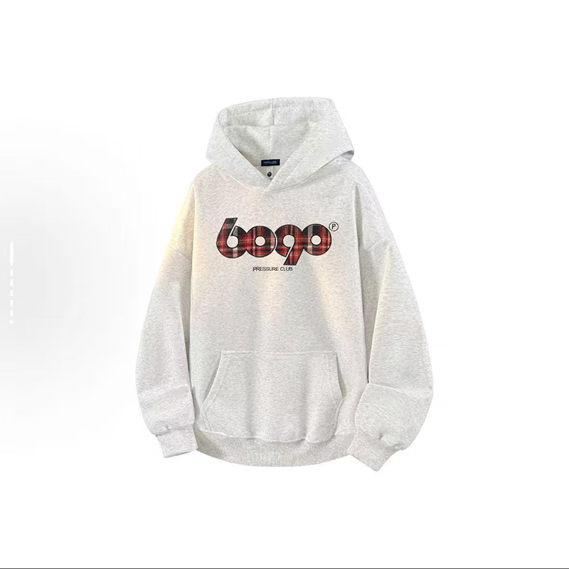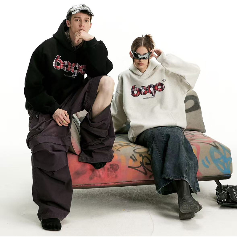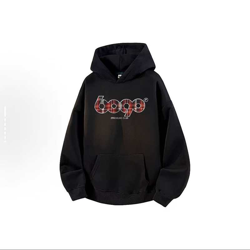 PRESSURE重磅美式刺绣字母Logo印花简约套头连帽落肩卫衣男女同款