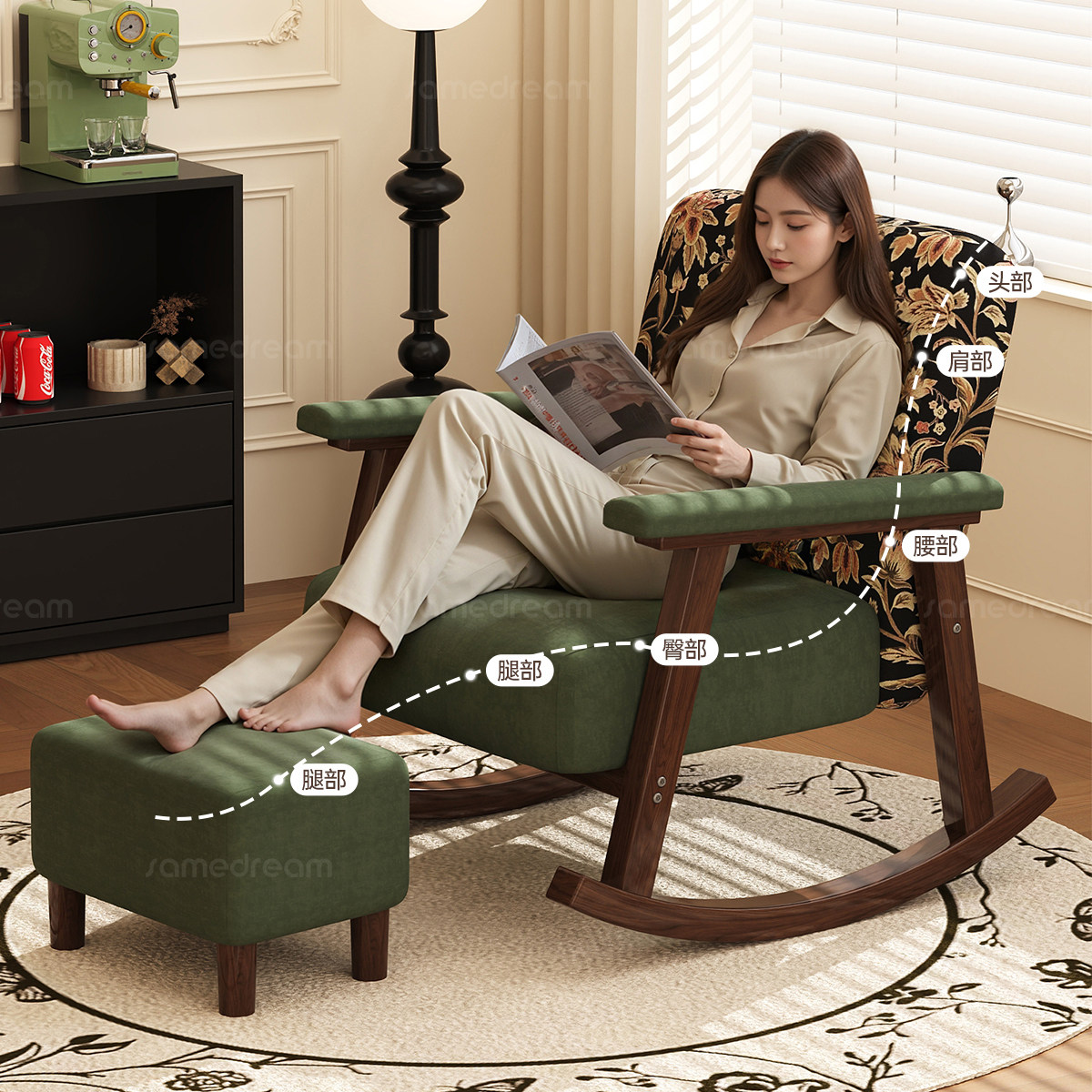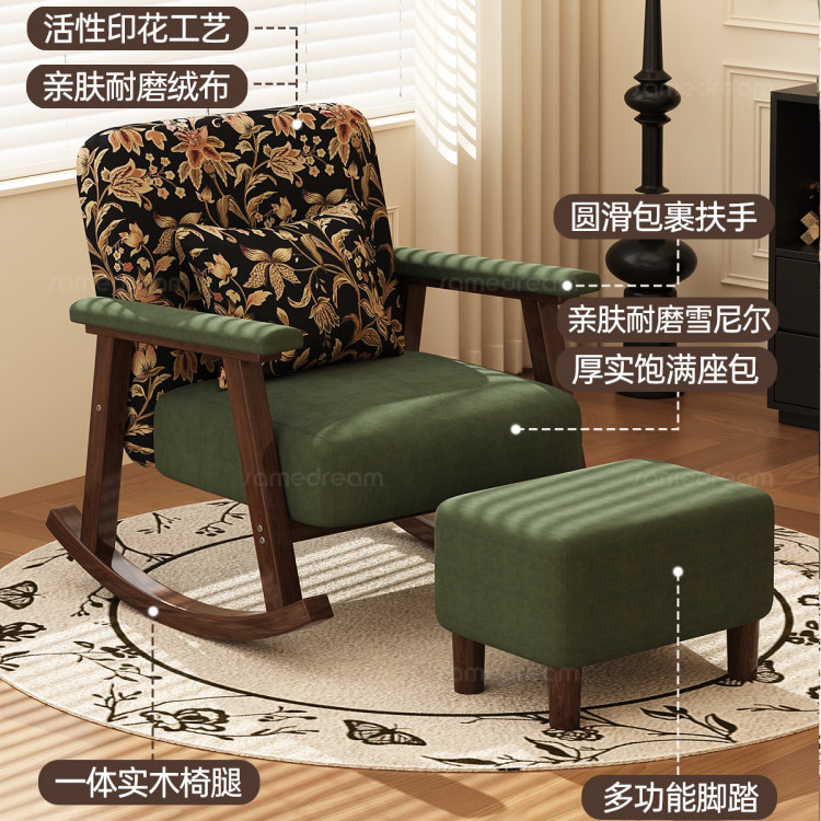 复古摇摇椅大人躺椅客厅阳台家用实木美式中古风单人摇椅沙发可躺