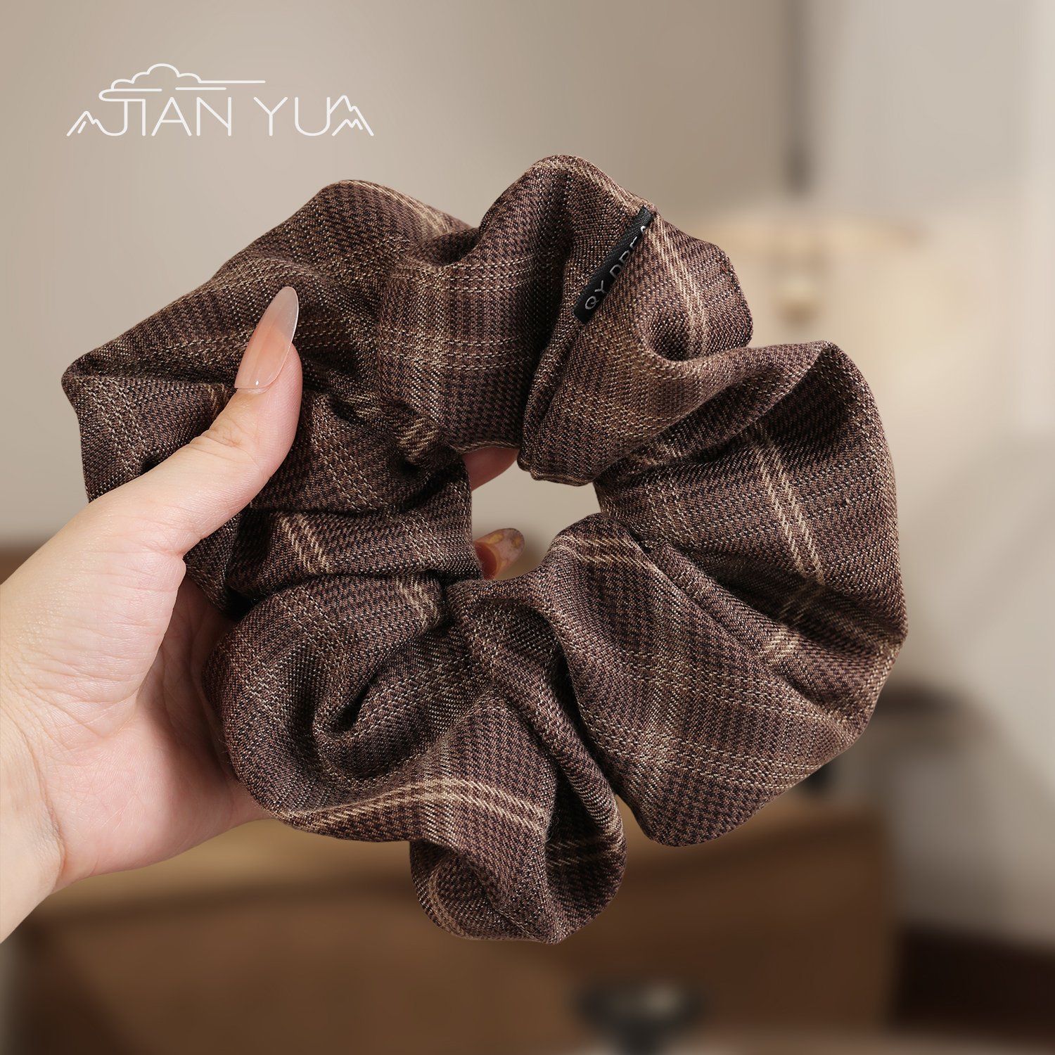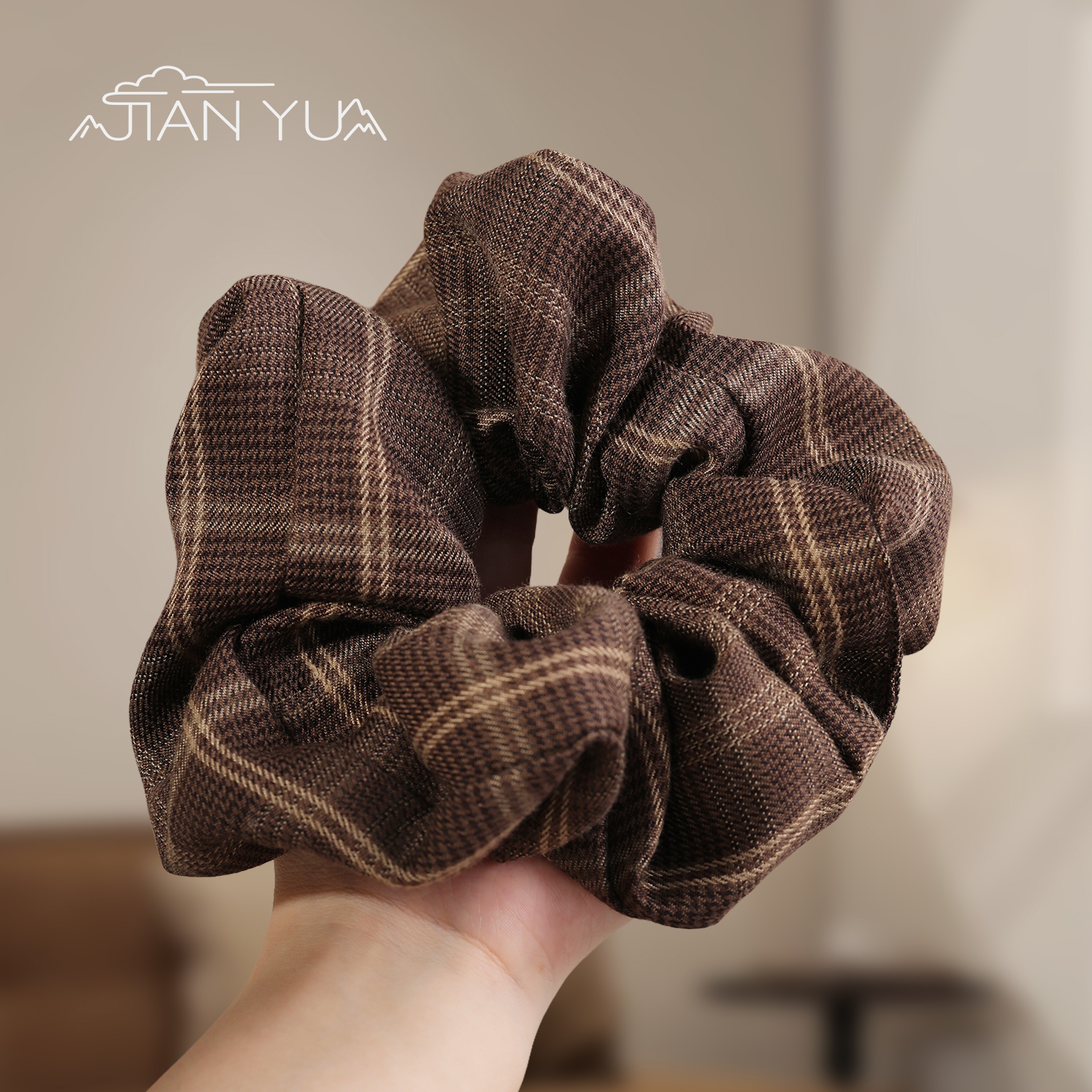 棕格雅绾-秋冬复古格纹大肠发圈学院风深色系发绳美拉德褶皱头绳