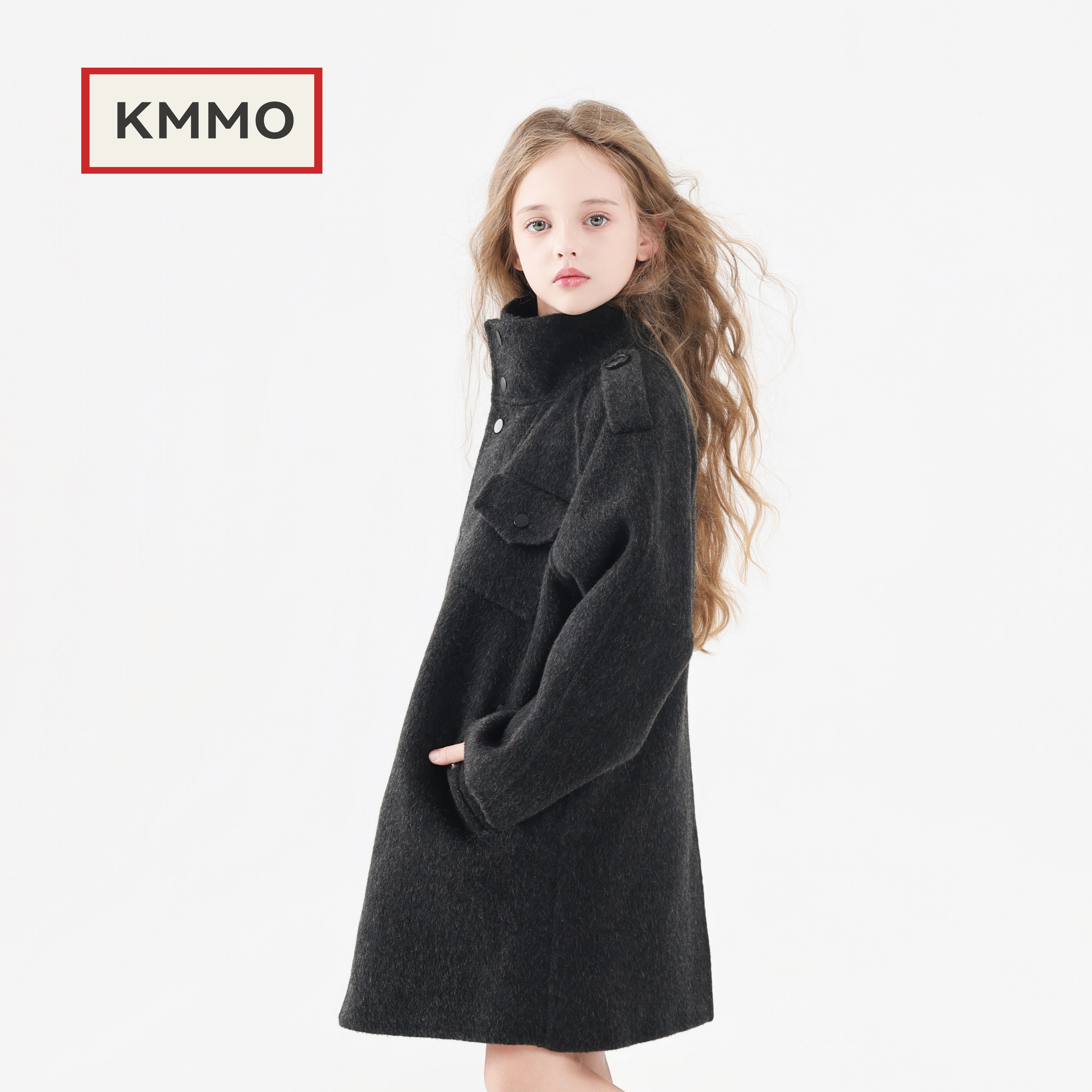 KMMO女童羊绒大衣冬季儿童中长款羊毛外套2025小女孩双面呢子风衣