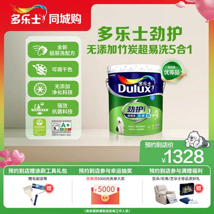 【同城购】多乐士乳胶漆劲护无添加竹炭抗菌超易洗五合一墙漆面漆