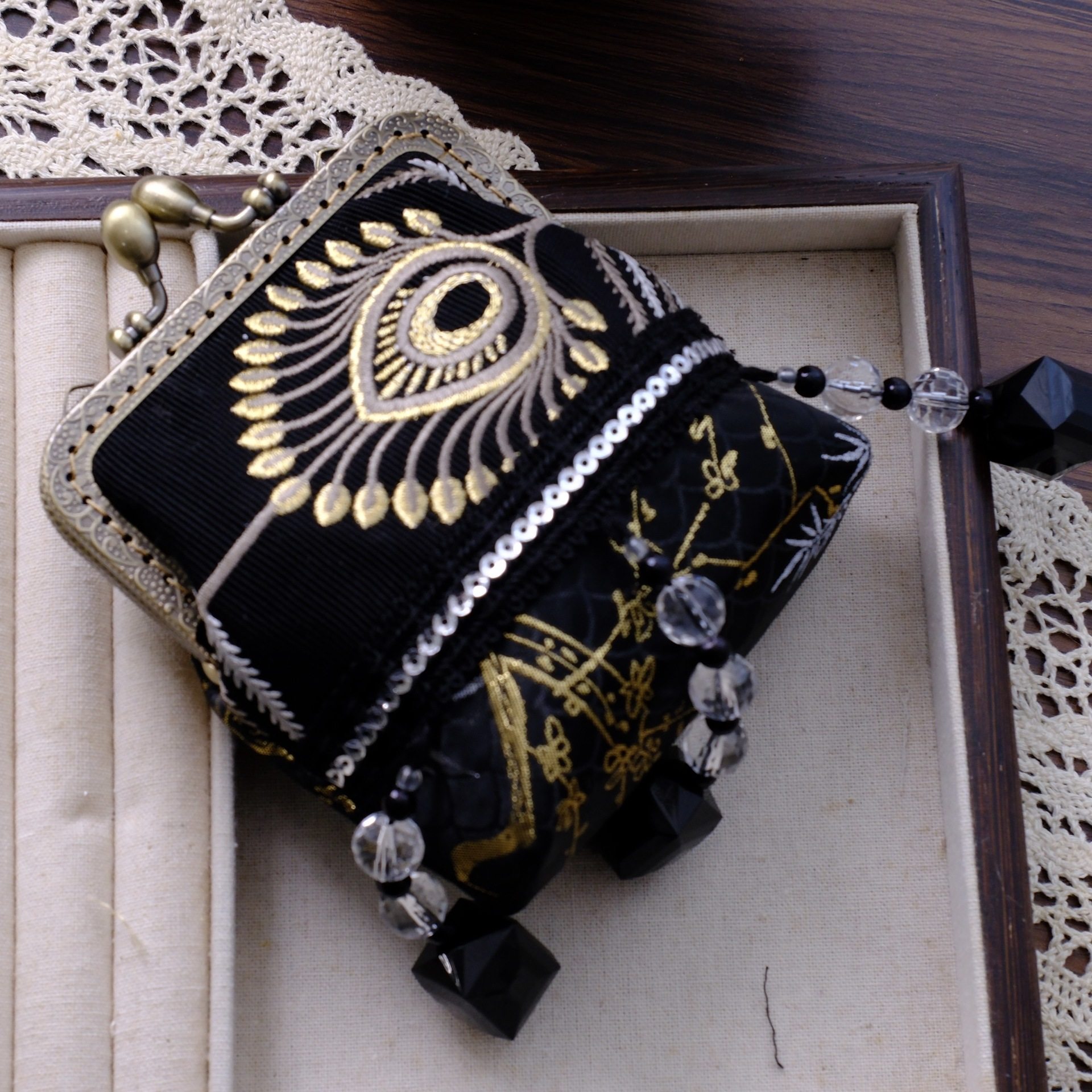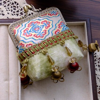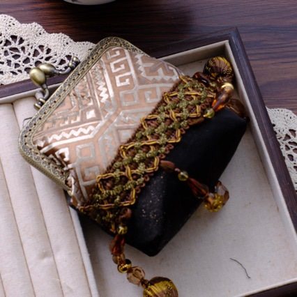 非遗口金包手工串珠新中式国风复古小挎包百搭背背链毛球斜挎包