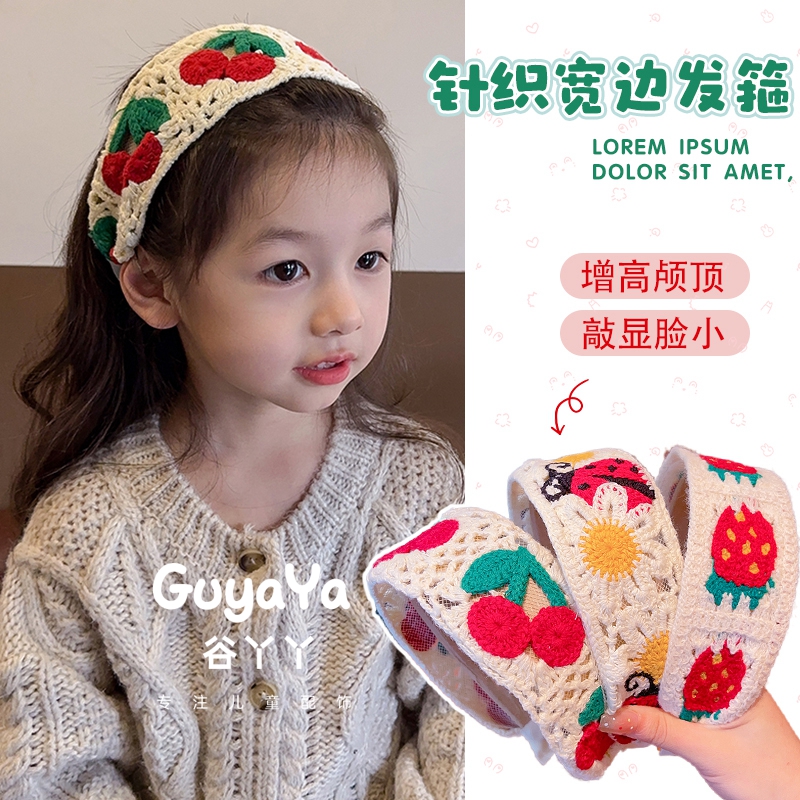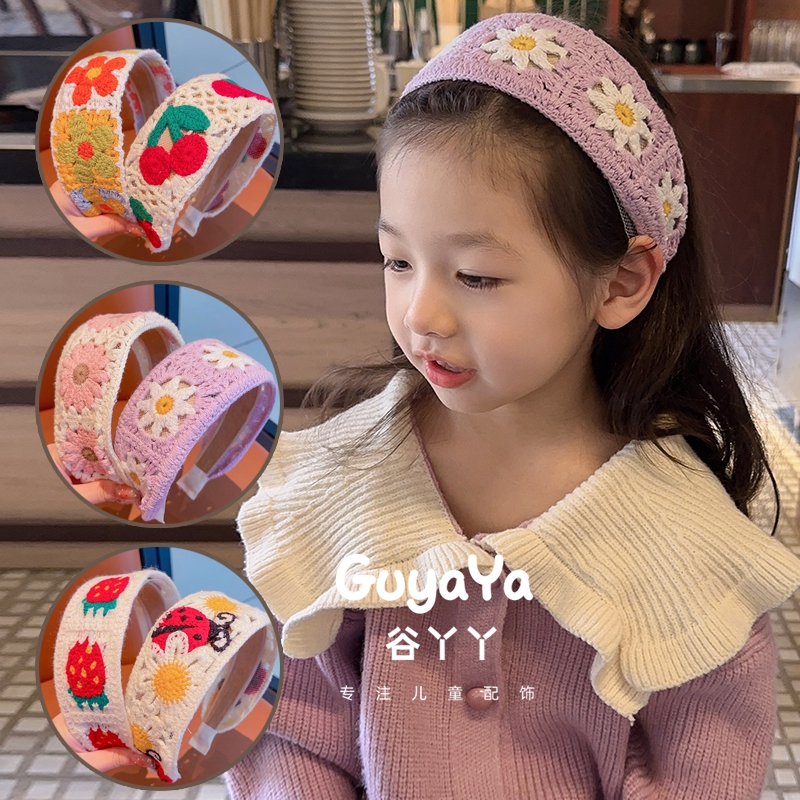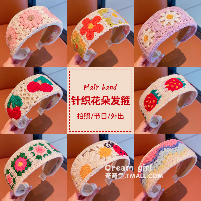 儿童针织刺绣毛线花朵发箍女孩整理碎发神器女童宽边头箍刘海发卡