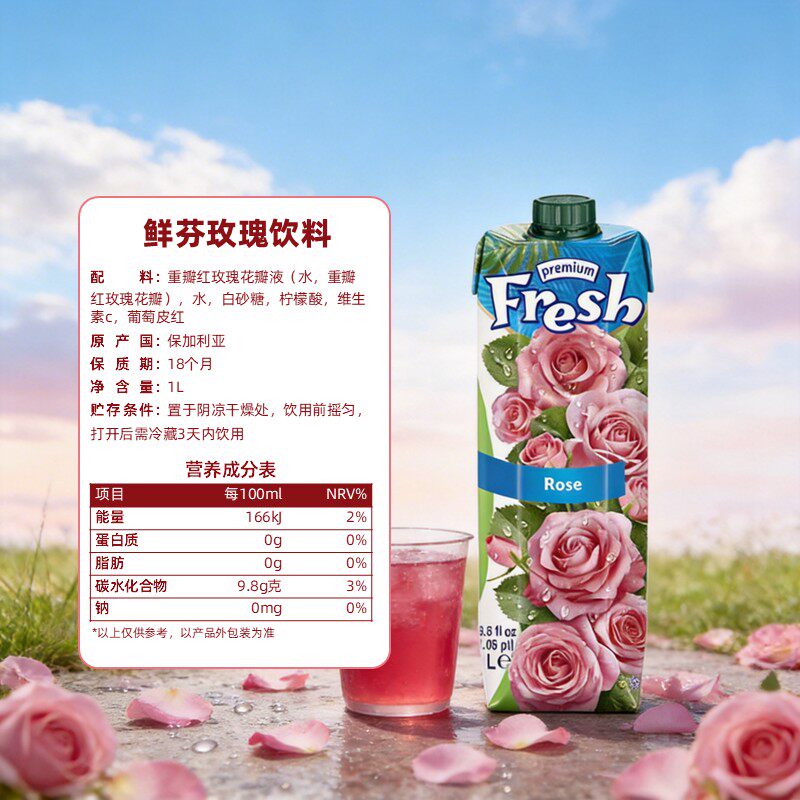 保加利亚鲜芬fresh玫瑰水饮料玫瑰汁1L*2芭乐婚礼订婚果汁饮品
