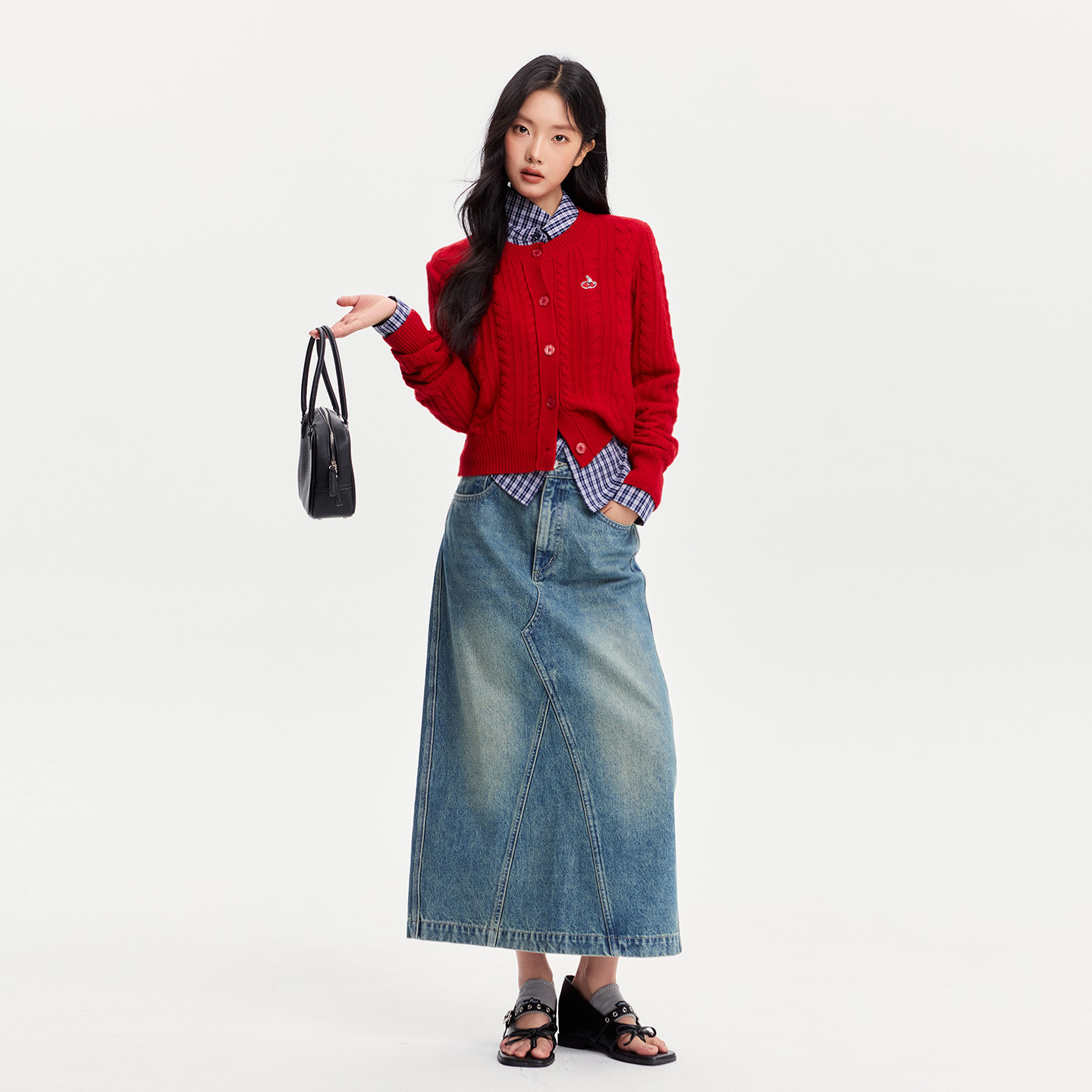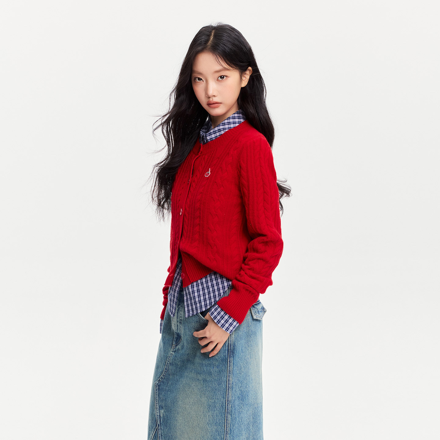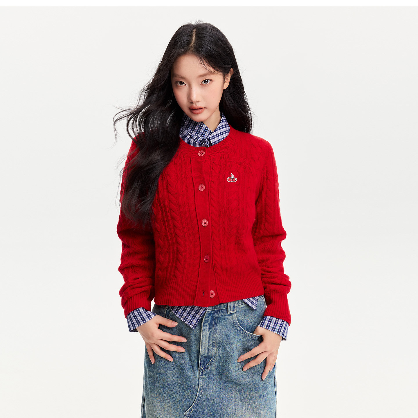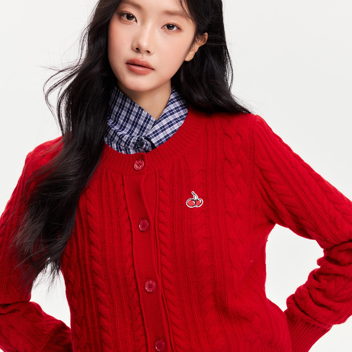 樱桃KIRSH经典刺绣绞花羊毛开衫