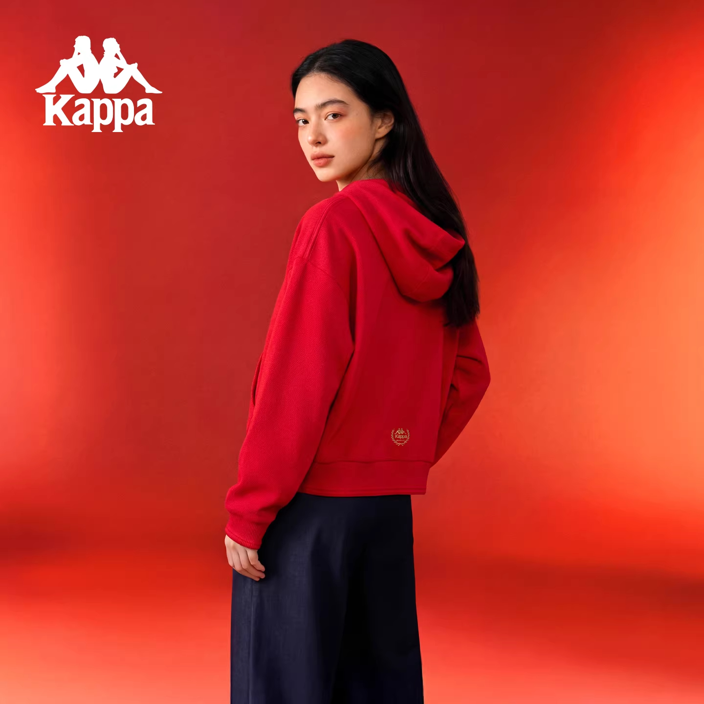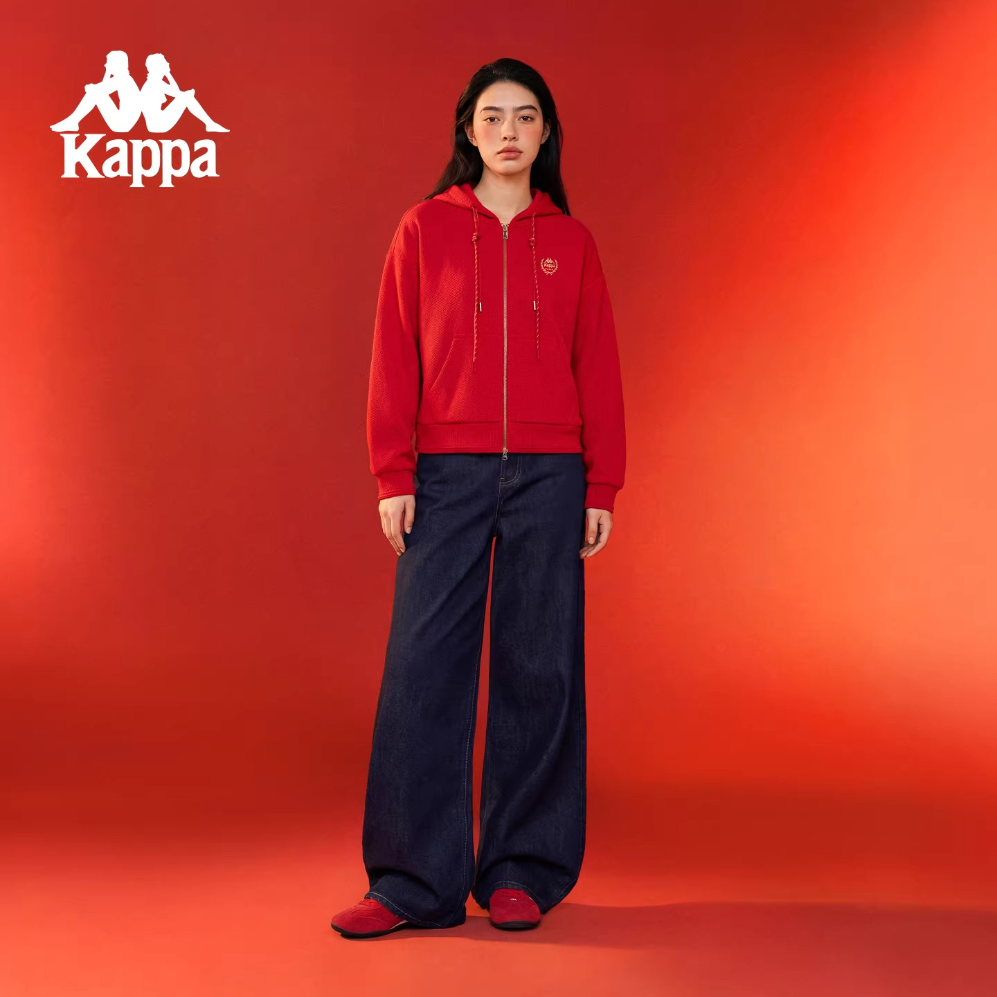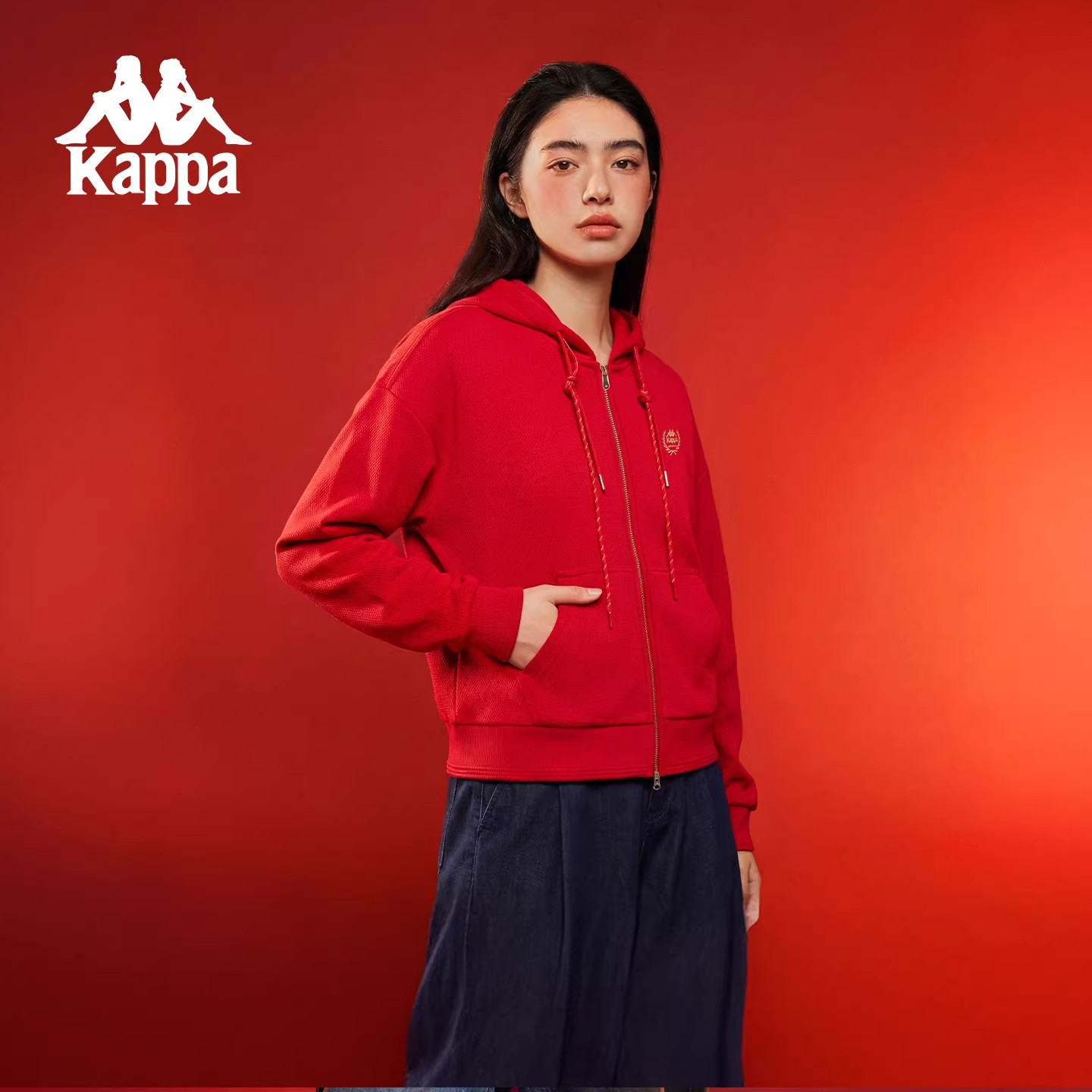 Kappa卡帕女装2026春季新款运动休闲红色连帽针织外套K0G22MK06