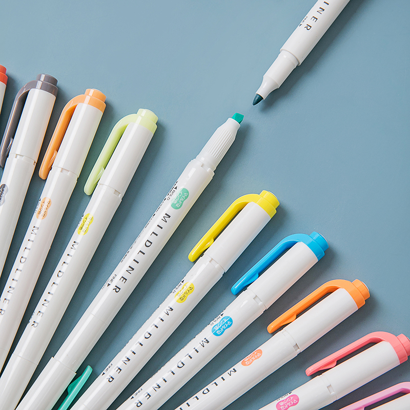 日本ZEBRA斑马WKT7荧光色笔柔和标记双头淡彩色学生手账用记号笔