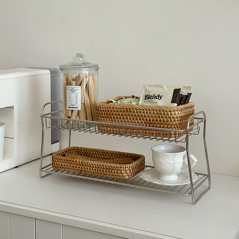 简约ins桌面双层不锈钢置物架台面化妆品收纳盒杂物整理收纳架子