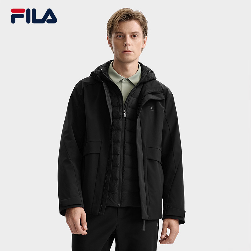 FILA 斐乐官方男士羽绒服两件套2025冬新款时尚休闲舒适连帽外套